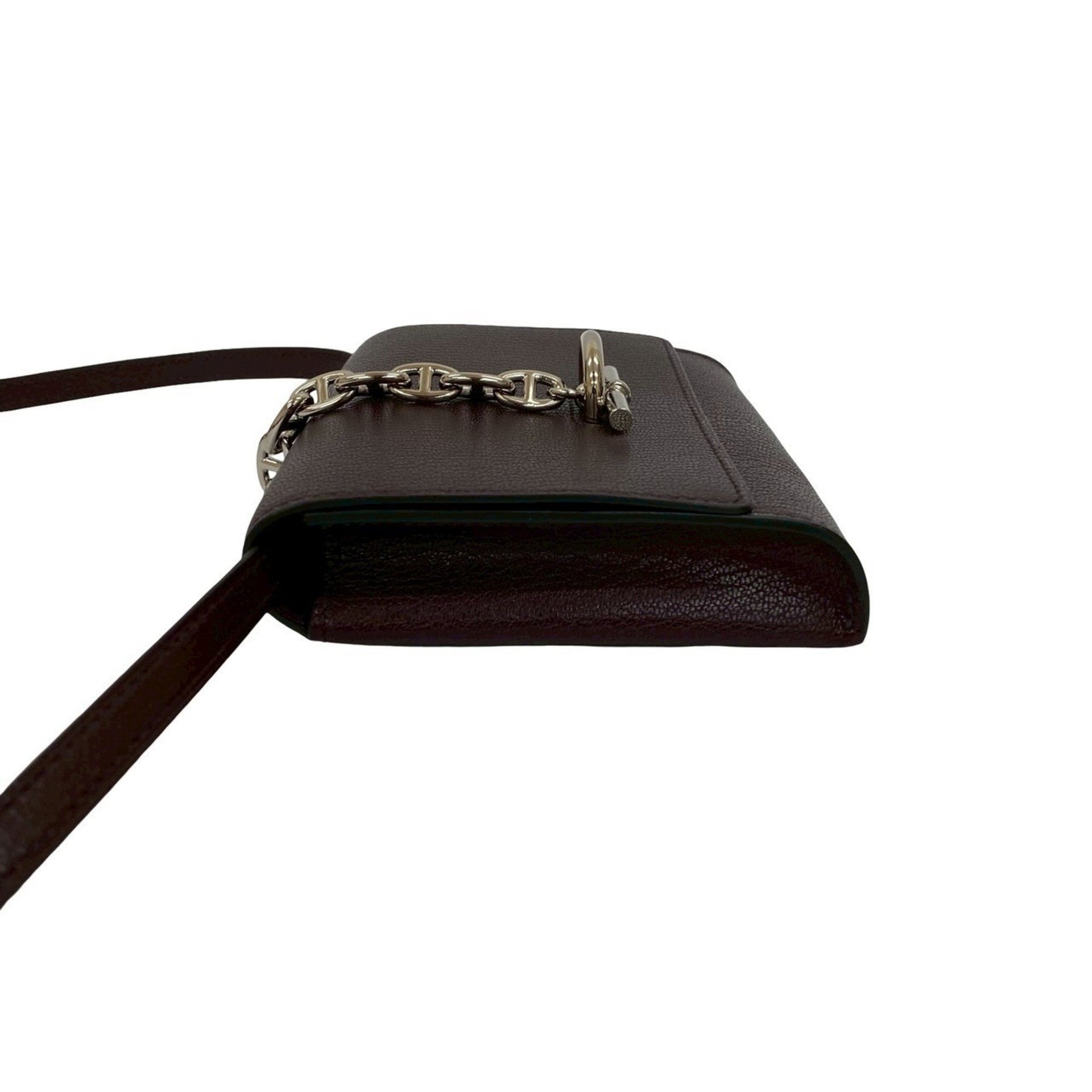 HERMES Chaine d\'Ancre Compact Chevre Leather Mini Shoulder Bag, Brown, 04430