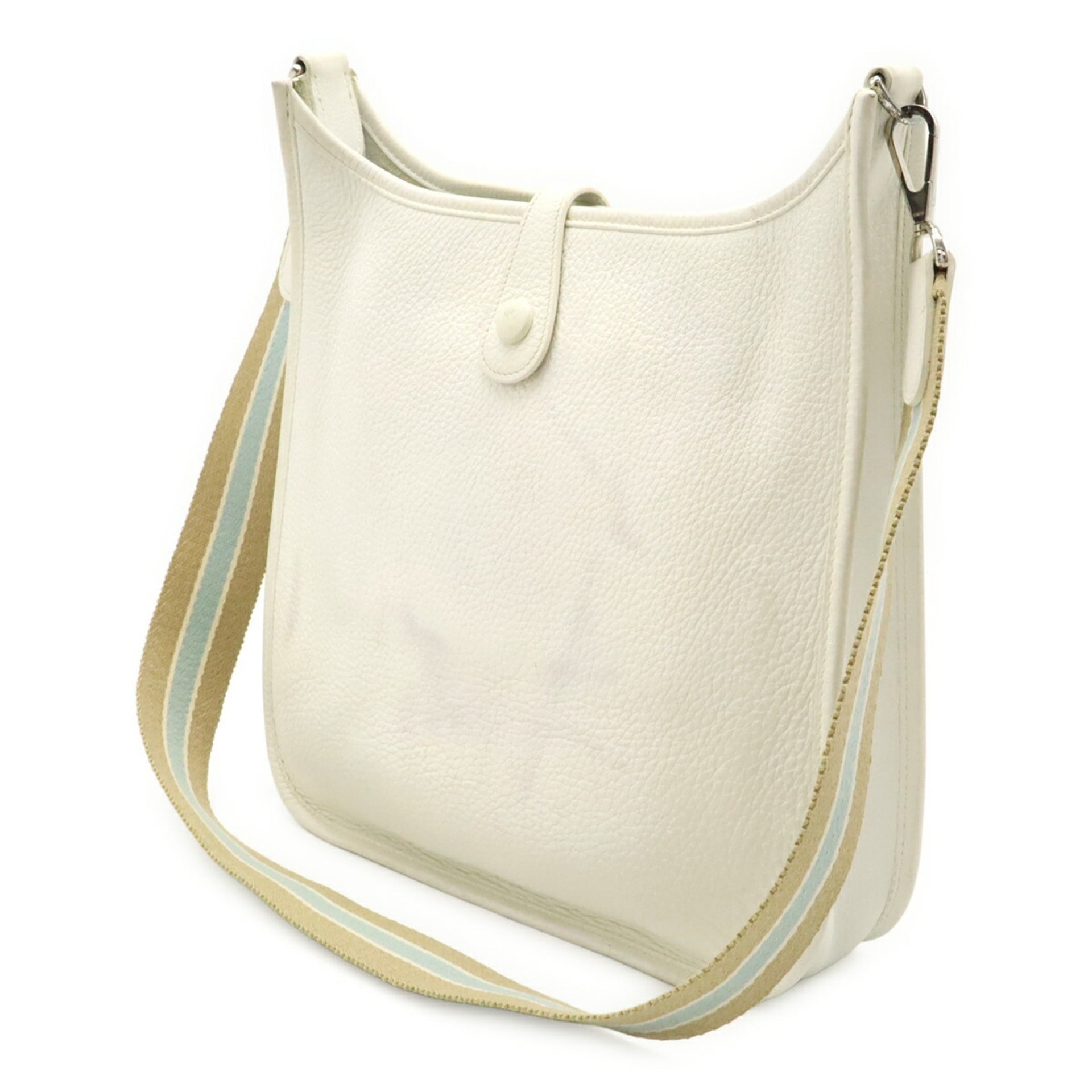 HERMES Evelyn I PM Shoulder Bag in Taurillon Clemence Leather, White, with L Stamp