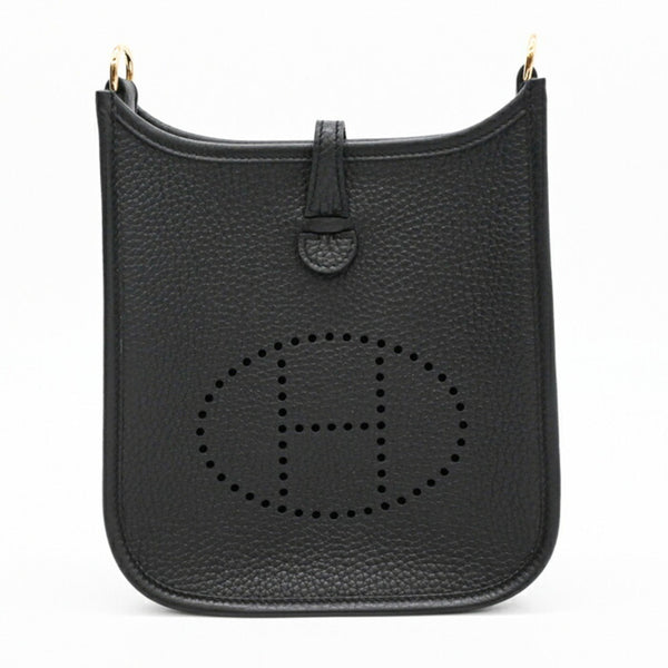 HERMES Evelyn TPM 16 Shoulder Bag in Taurillon Clemence Leather, Black #K