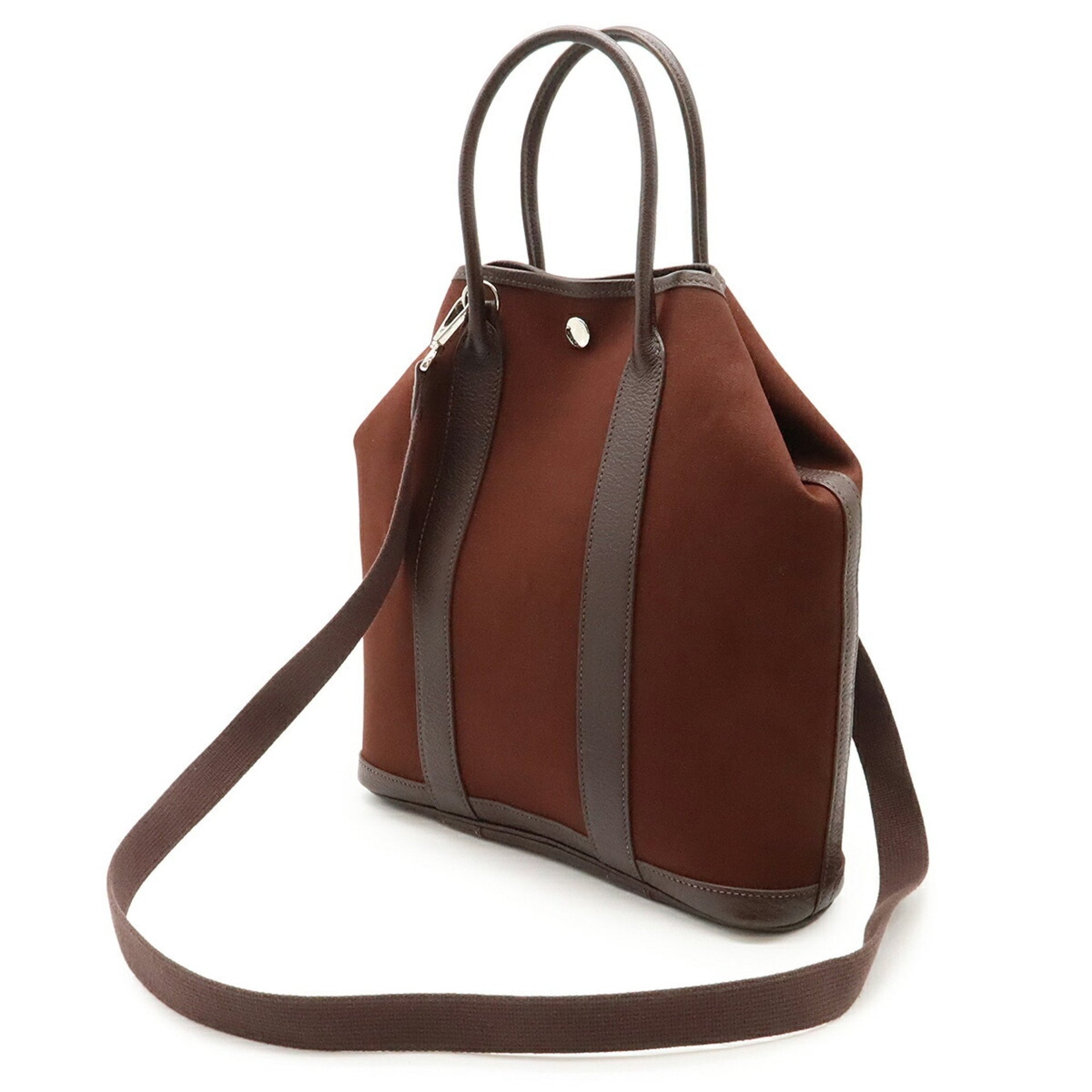 HERMES Garden File PM Tote Bag/Shoulder Bag, Toile Officier Leather, Brown, □I Stamp