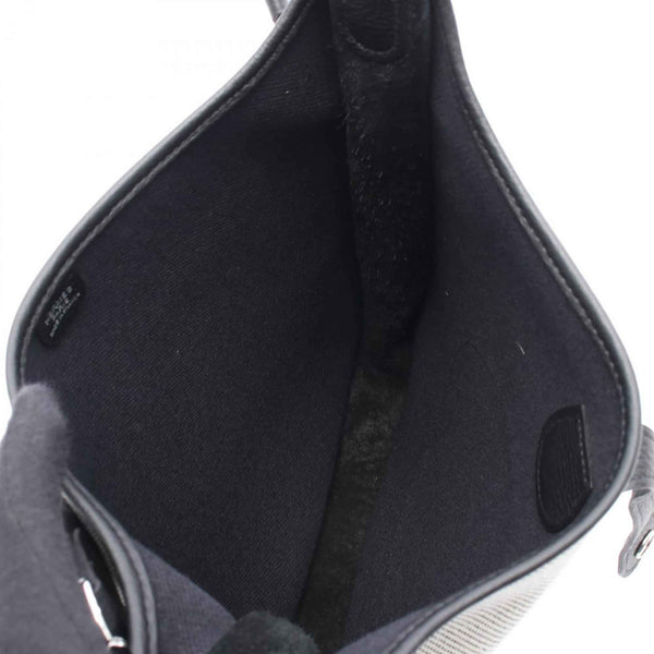 Hermes Hermès Evelyn 3 Trois PM Shoulder Bag in Canvas and Leather, Toile Twill Ash / Taurillon Clemence, Women\'s, Gray Black