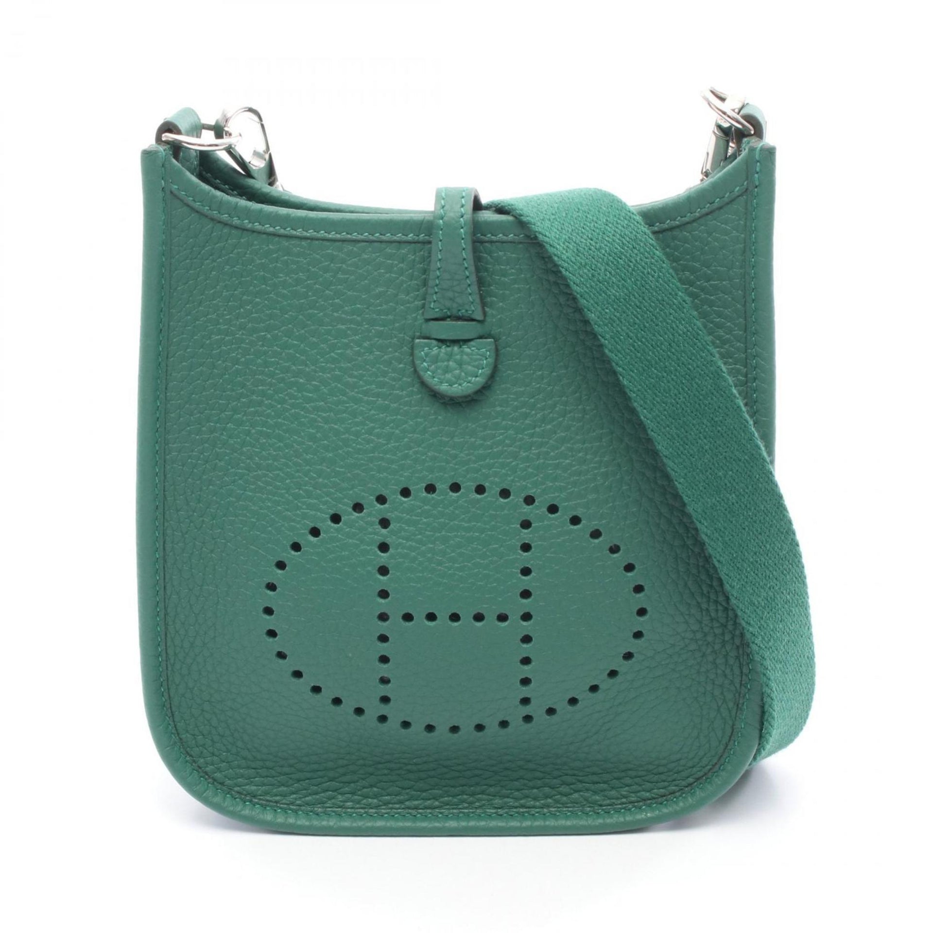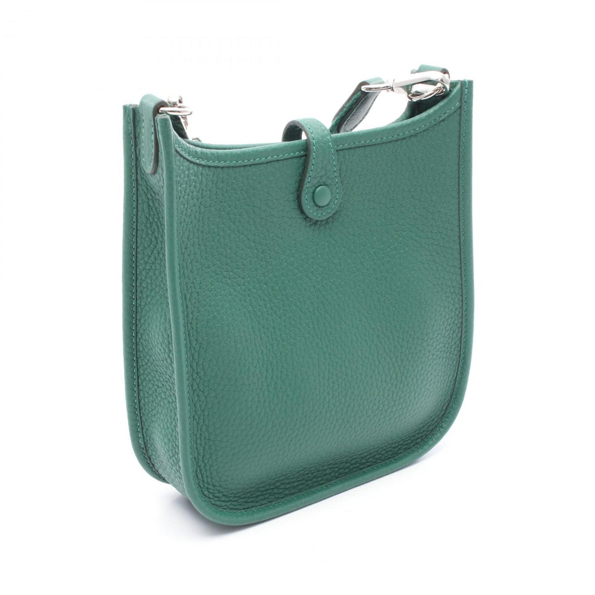 Hermes Hermès Evelyn TPM shoulder bag in Taurillon Clemence leather, green for women.