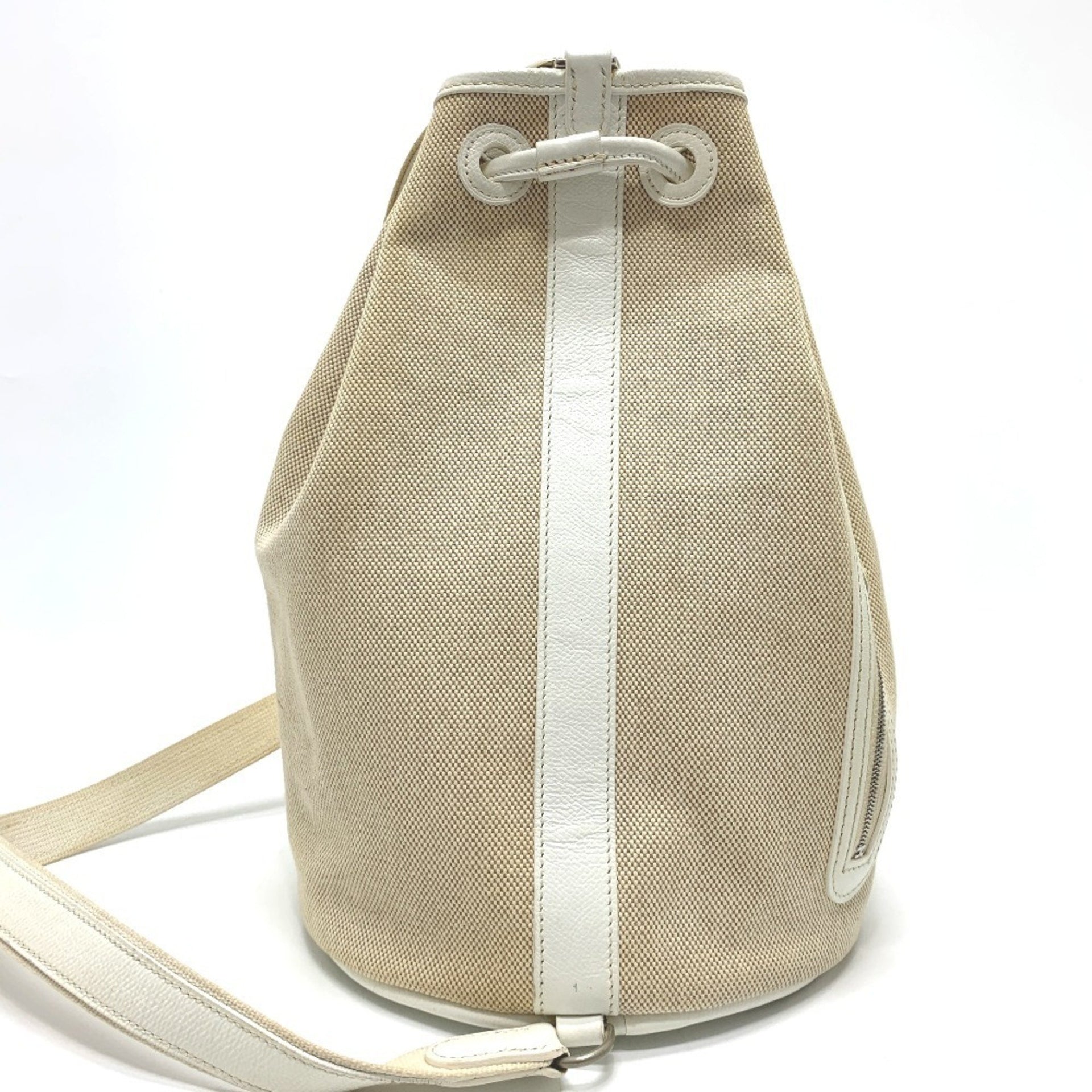 HERMES Sac Marine Recief PM Drawstring One-Shoulder Bag, Toile Officier Leather, Women\'s, Ivory