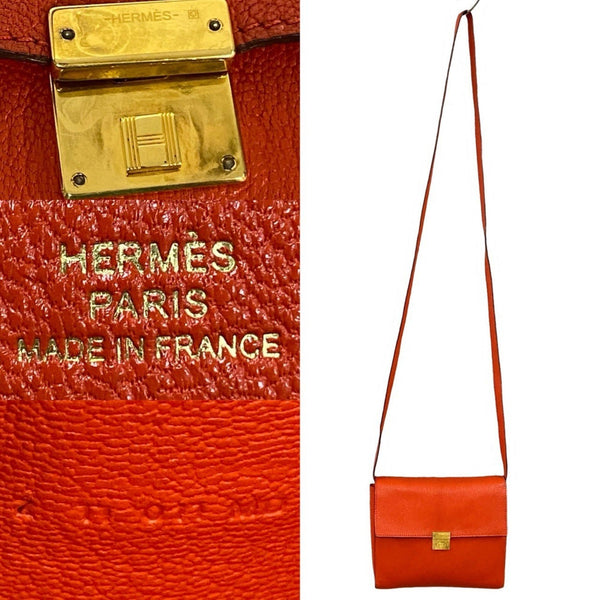 HERMES Z-stamped Click 16 logo hardware Negonda leather mini shoulder bag/pouch in orange (00286)