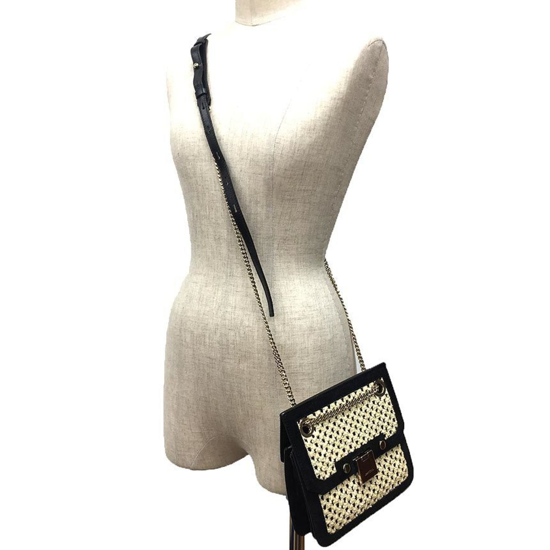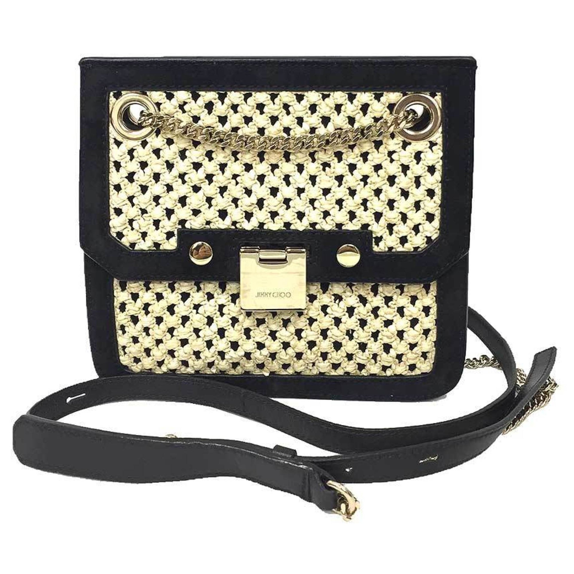 JIMMY CHOO Shoulder Bag in Leather and Straw, Black Beige, Women\'s