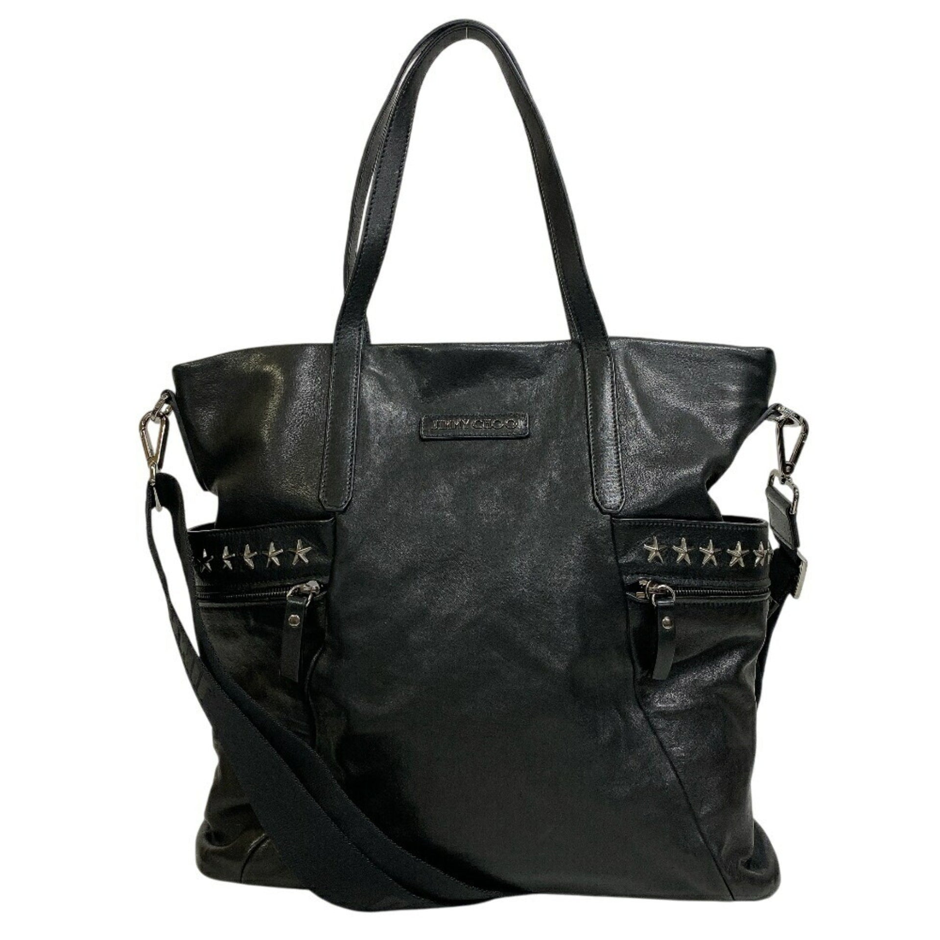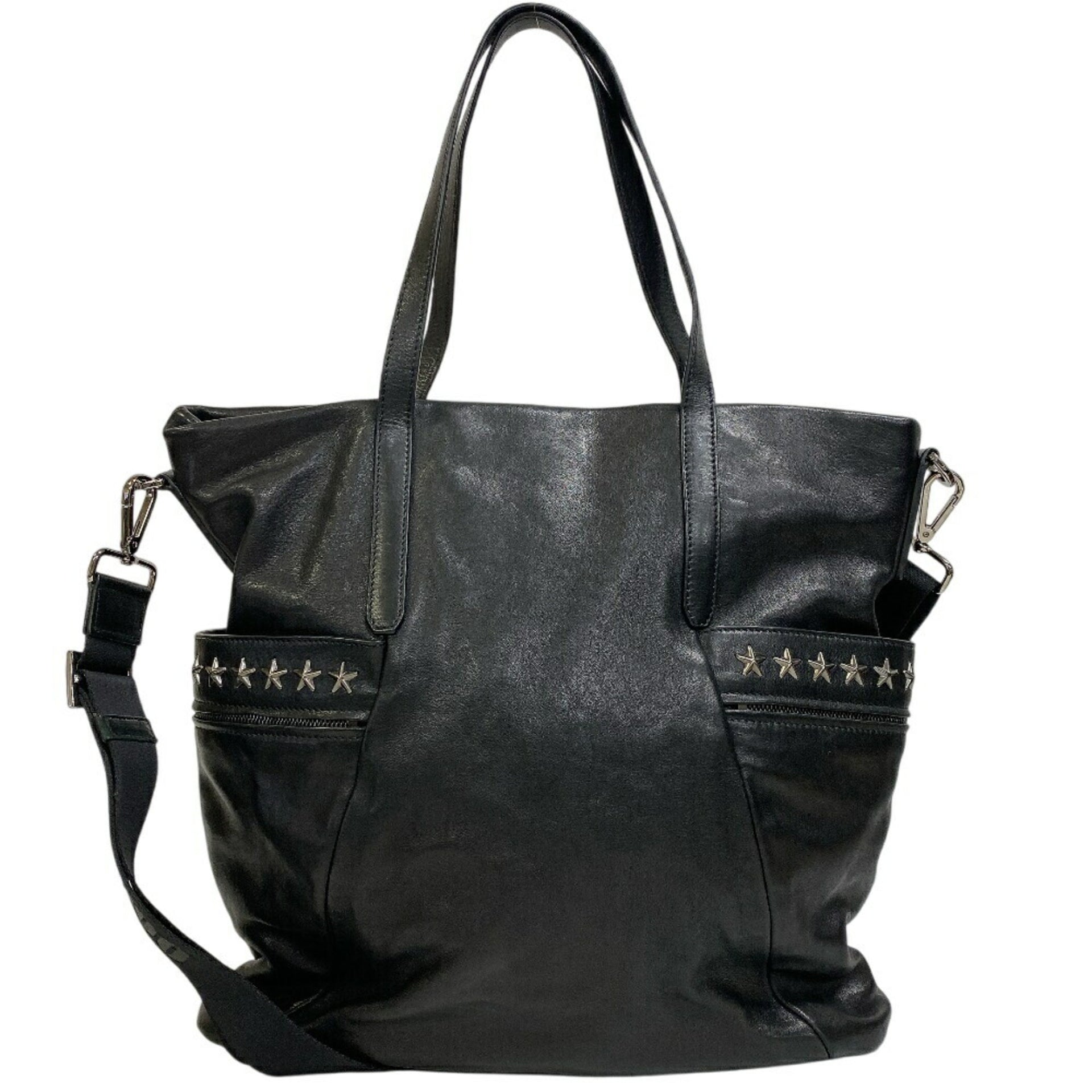 JIMMY CHOO Star Stud Biker Shoulder Bag Tote Black Unisex