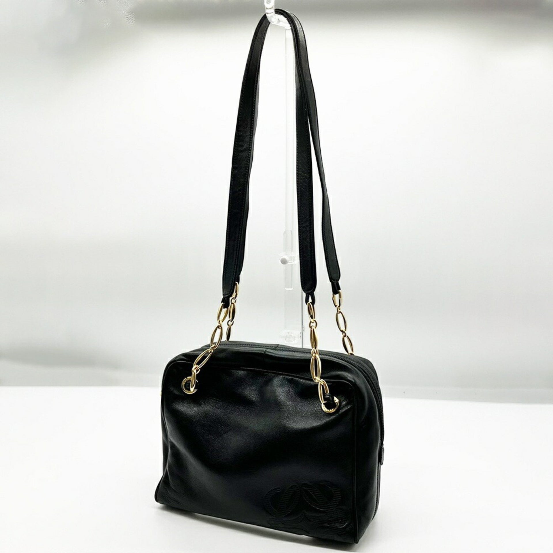 LOEWE Shoulder Bag in Black Anagram Embossed Nappa Leather with Chain