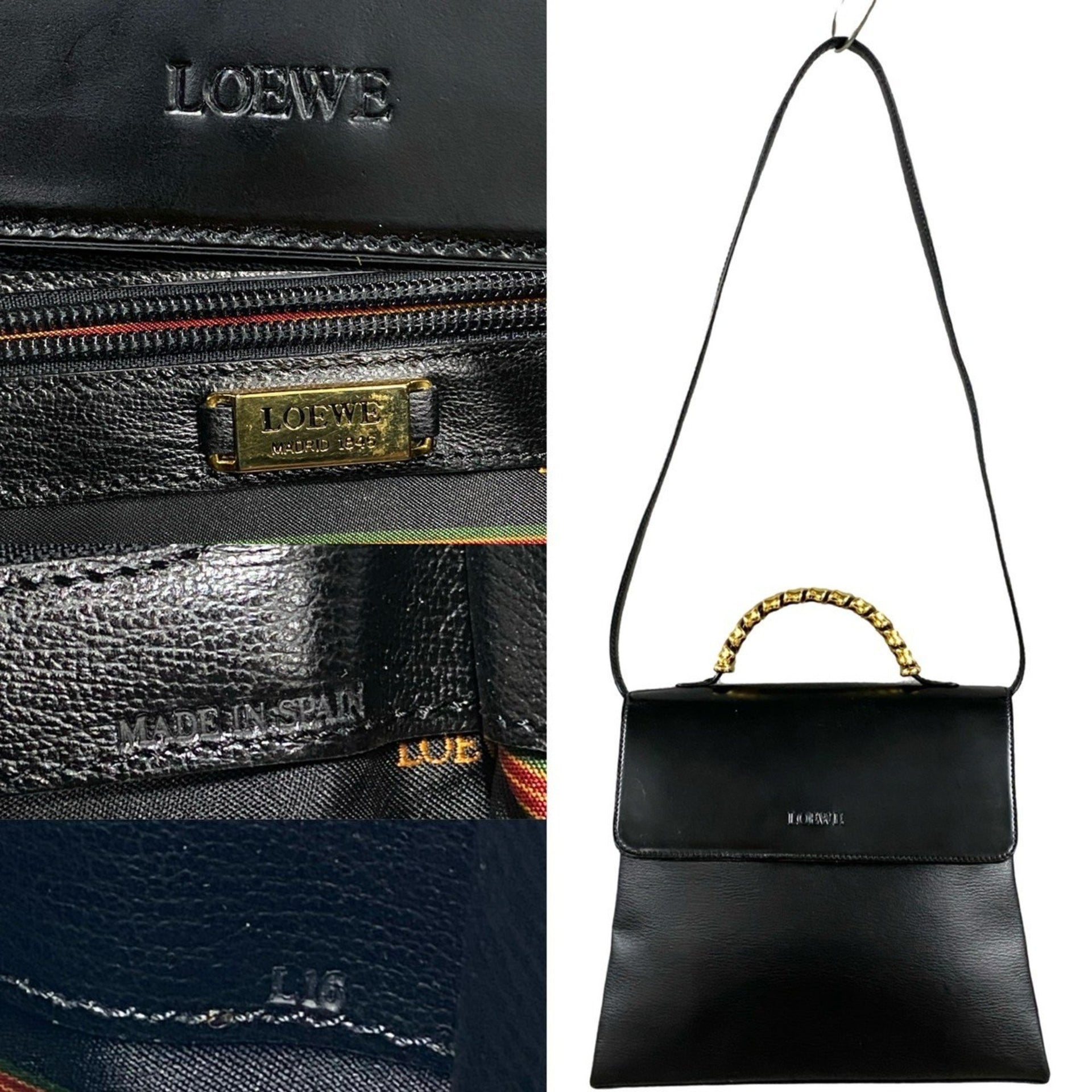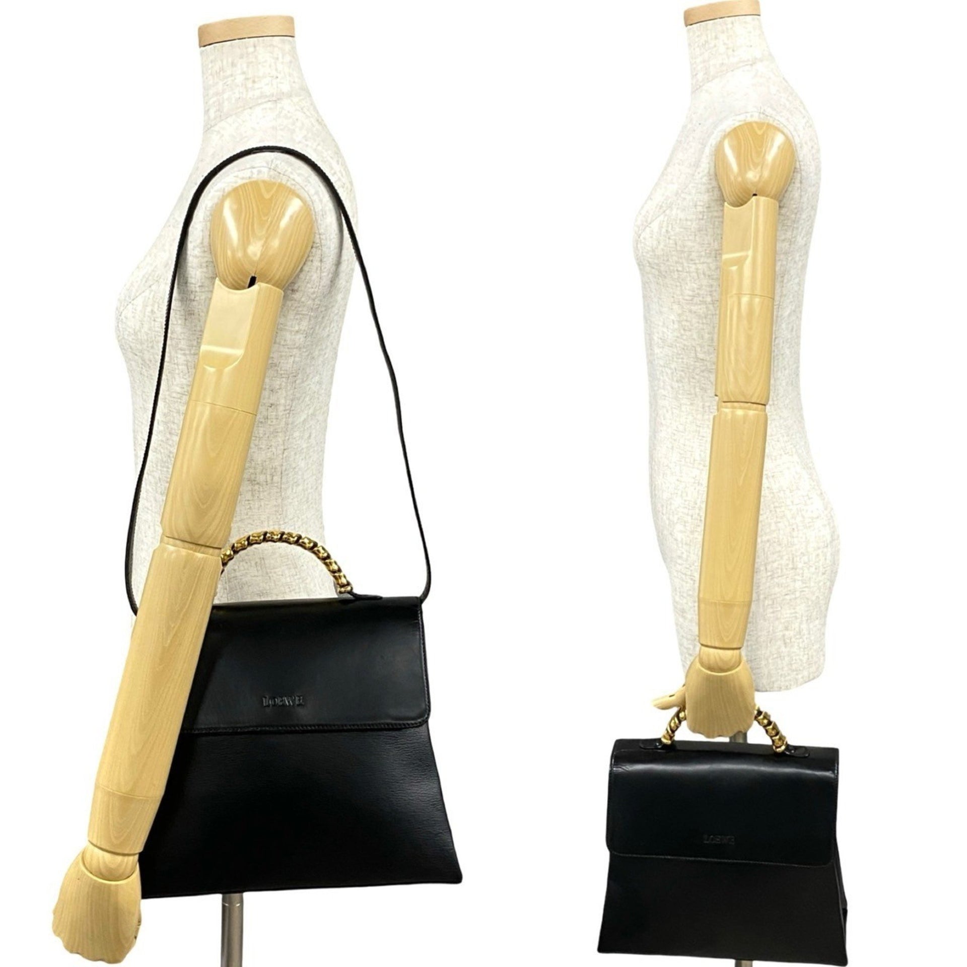 LOEWE Velázquez Twist Handle Leather 2-Way Handbag/Shoulder Bag, Black, 36398