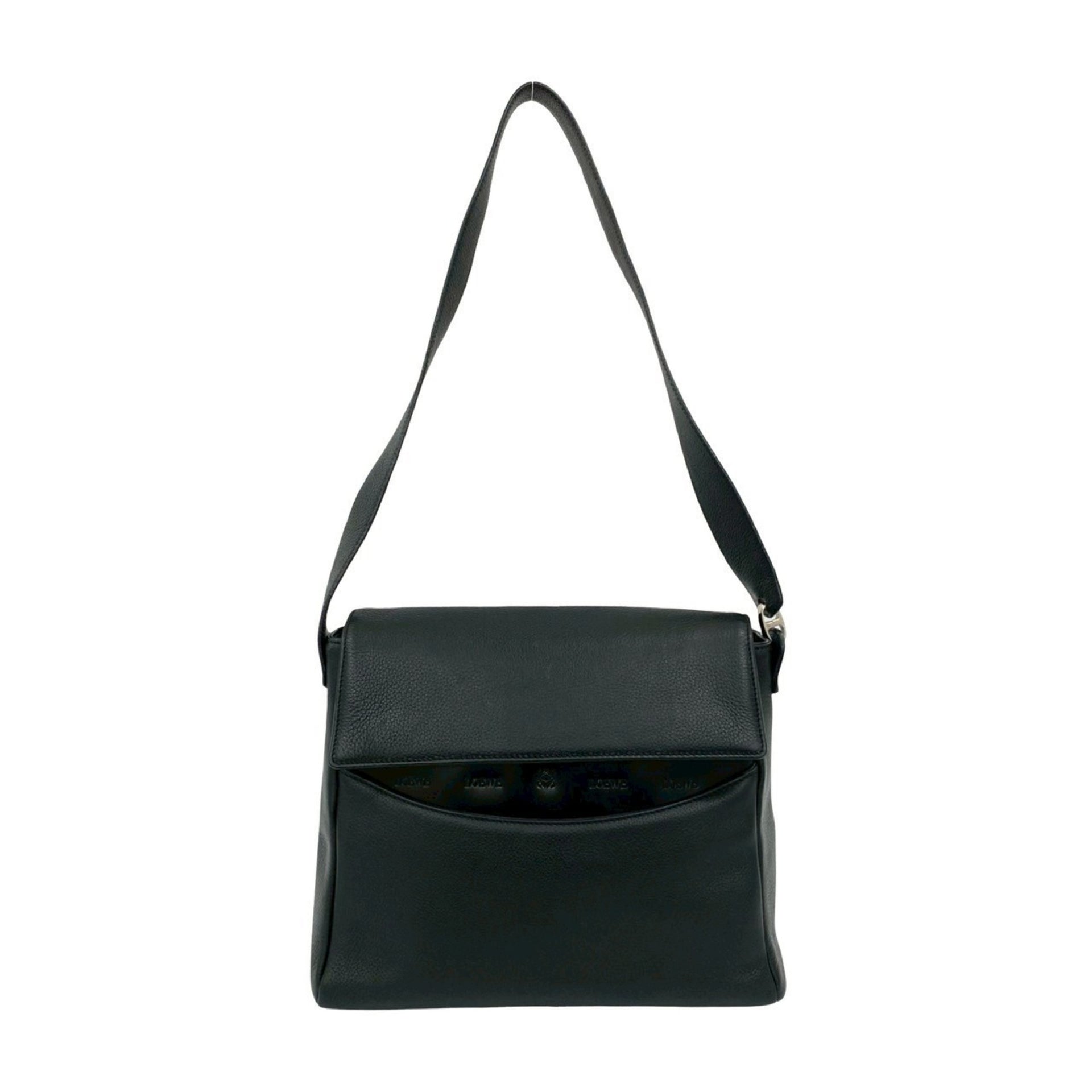 LOEWE Vintage Anagram Logo Embossed Leather Semi-Shoulder Bag/One-Shoulder Bag, Black, 27785