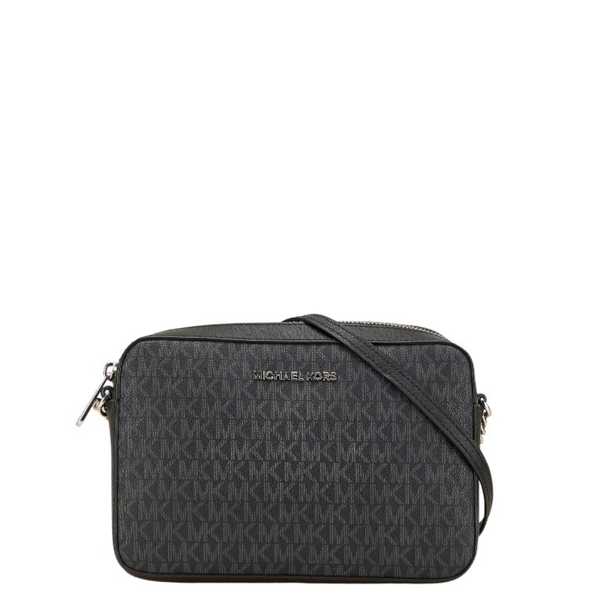 Michael Kors Signature Crossbody Chain Shoulder Bag 35F8STTC3B Black and Gray Leather Women\'s