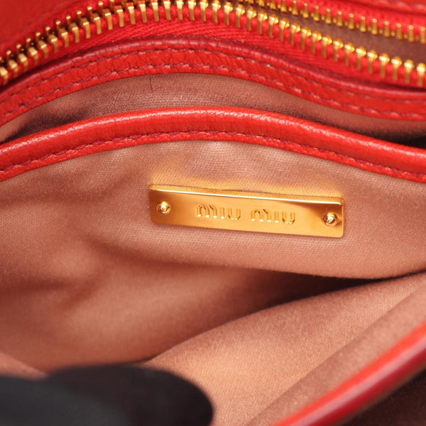Miu Miu Miu Madras Shoulder Bag, Leather, Women\'s, Red, RTC460