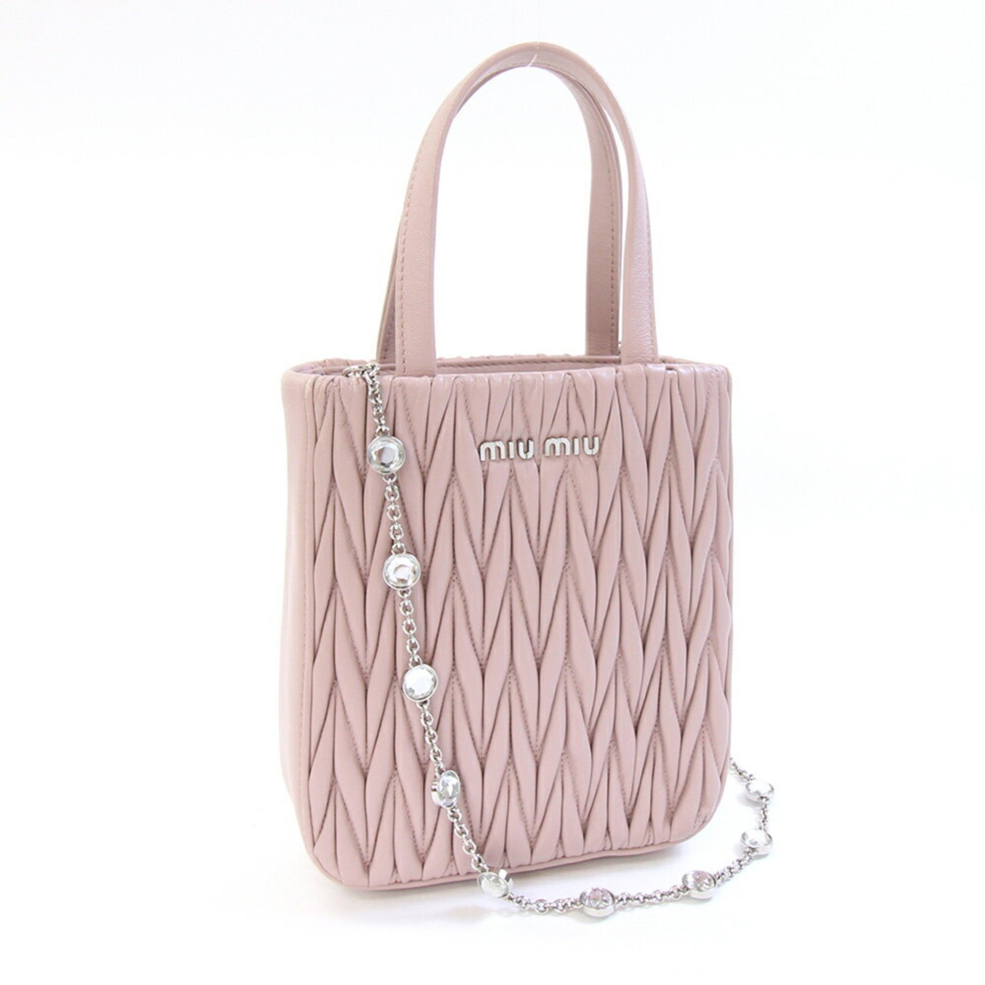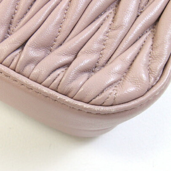 Miu Miu Miu Matelasse Handbag 5BA220 Smoky Pink Leather Shoulder Bag with Chain and Gathered Beads, Women\'s MIU
