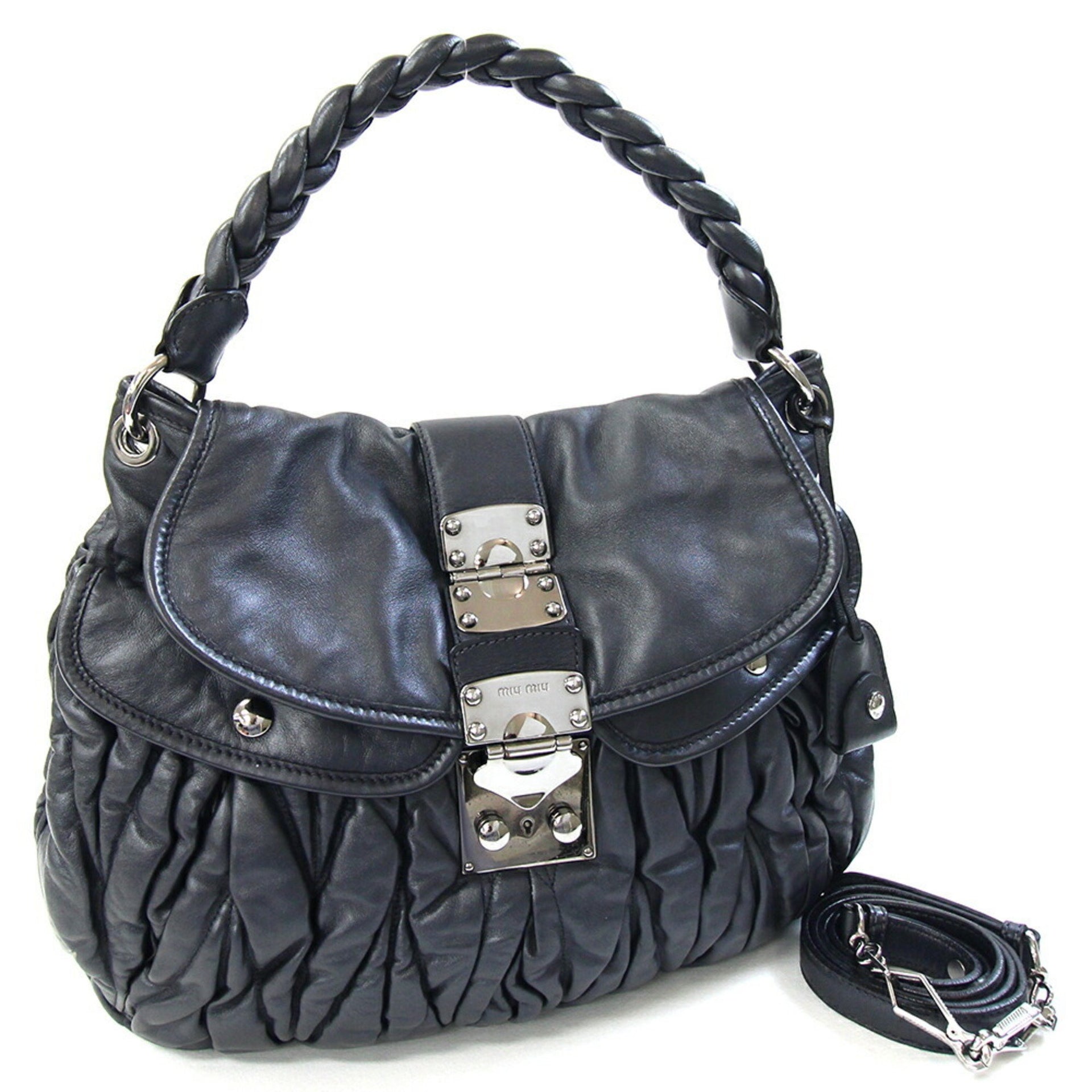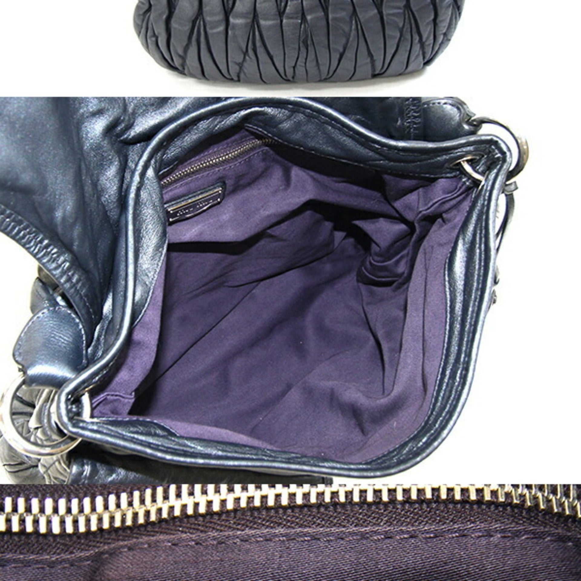 Miu Miu Miu Matelasse RR1300 Shoulder Bag, Gray Leather, Gathered, Women\'s, MIU