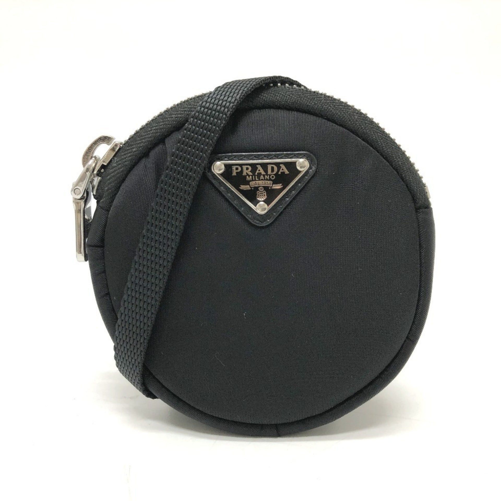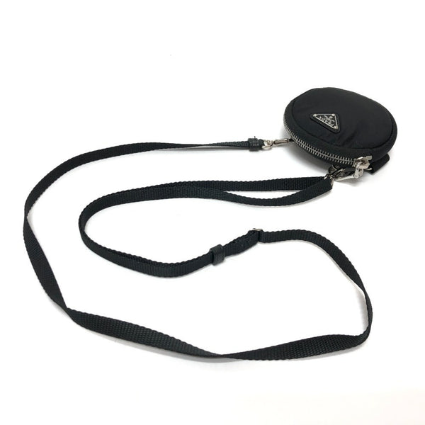 PRADA 1TT129 Triangle Logo Neck Pouch/Shoulder Bag in Nylon/Leather, Unisex, Black