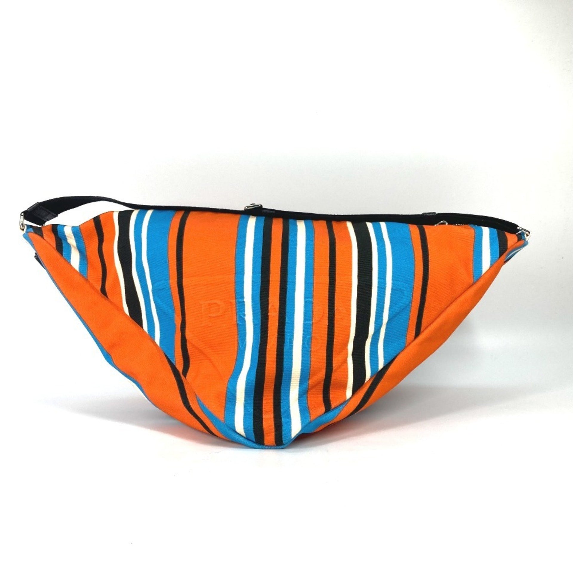 PRADA 2VY007 Striped Triangle Bayadere Crossbody Shoulder Bag in Canvas, Men\'s, Orange