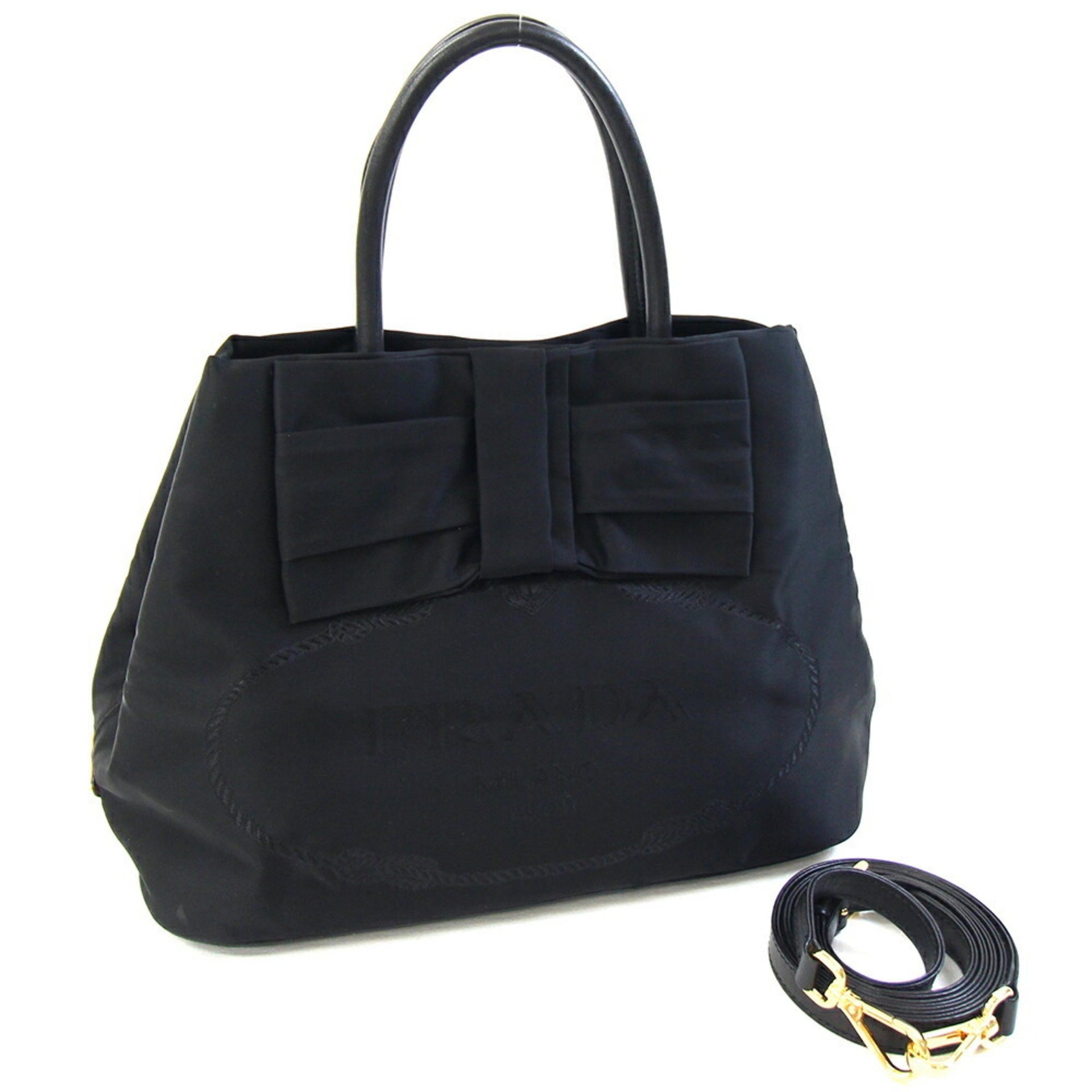 Prada Handbag 1BG068 Black Nylon and Leather Shoulder Bag with Ribbon, Women\'s PRADA