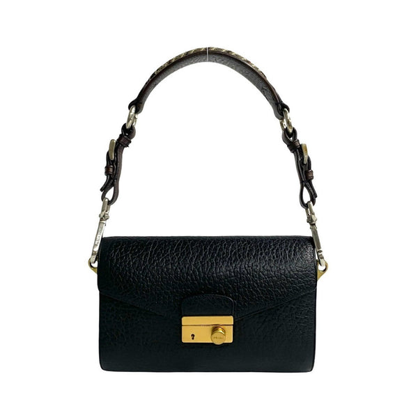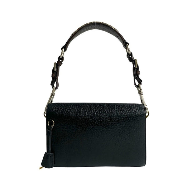 PRADA Prada logo hardware leather tweed semi-shoulder bag mini handbag black brown 43035