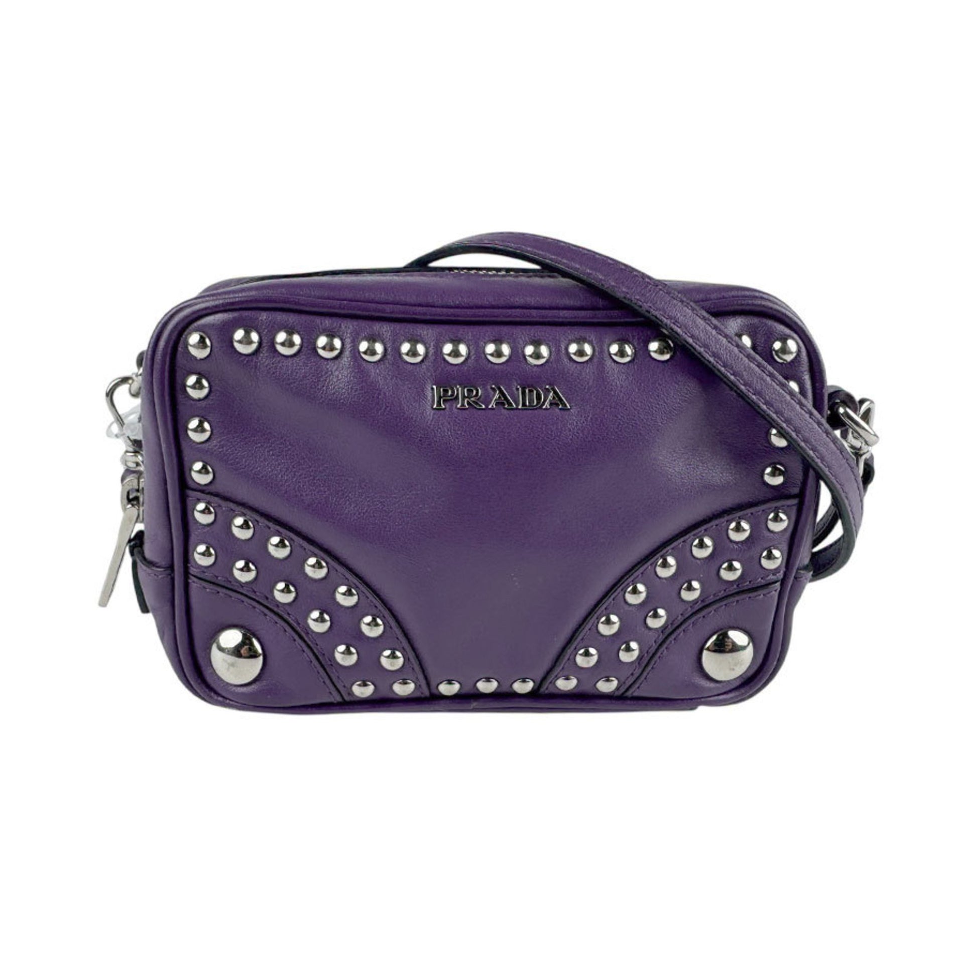 Prada PRADA Shoulder Bag Leather Metal Purple Silver Women\'s z6812