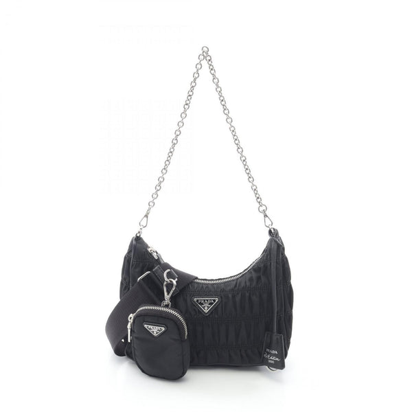 Prada Re-Edition 2006 Embroidered Drill Riamo Fi Shoulder Bag in Nylon and Saffiano Leather, Black, 1BH204