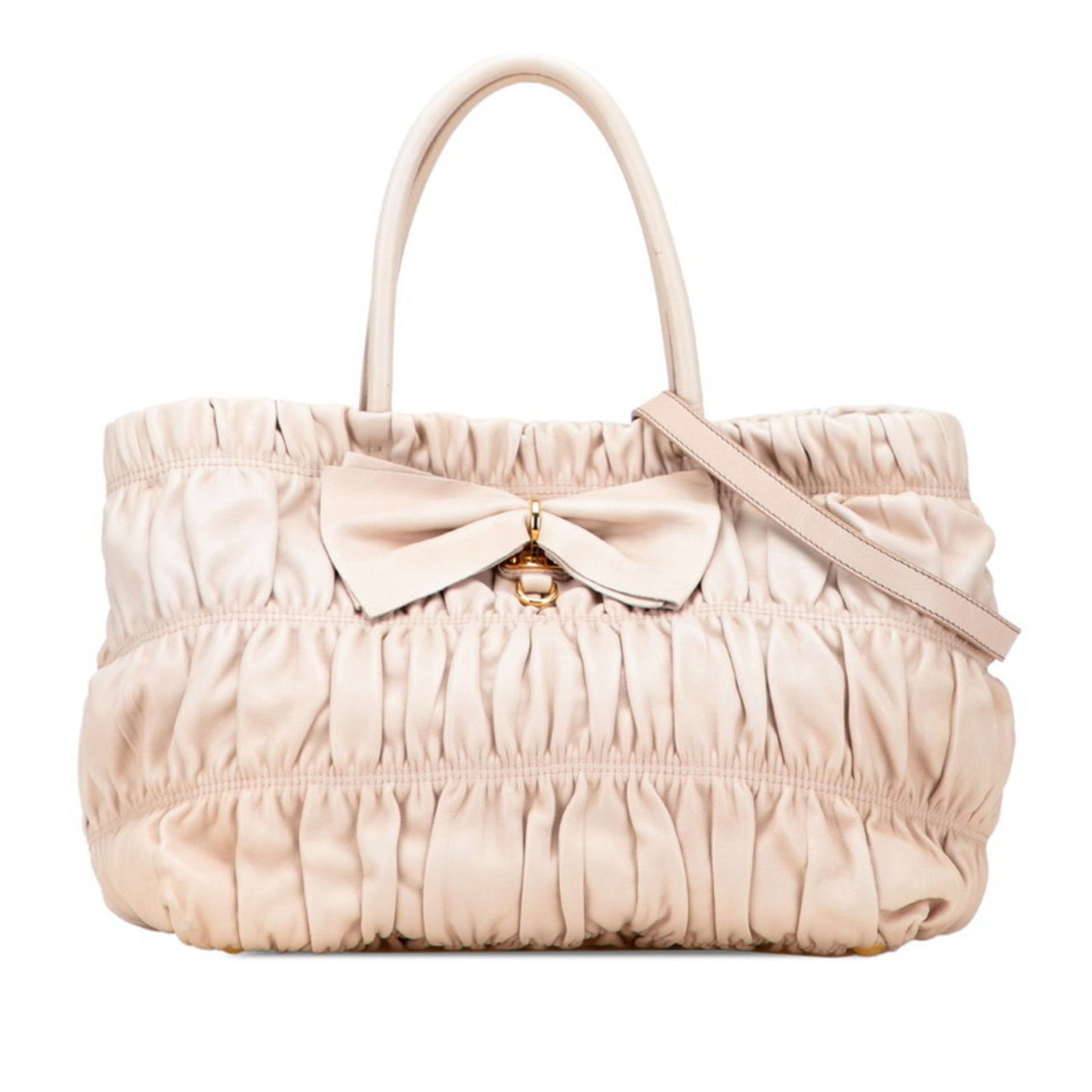 Prada Ribbon Tote Bag/Shoulder Bag, 2-Way, BN1932, Beige/Pink Beige Leather, Women\'s, PRADA