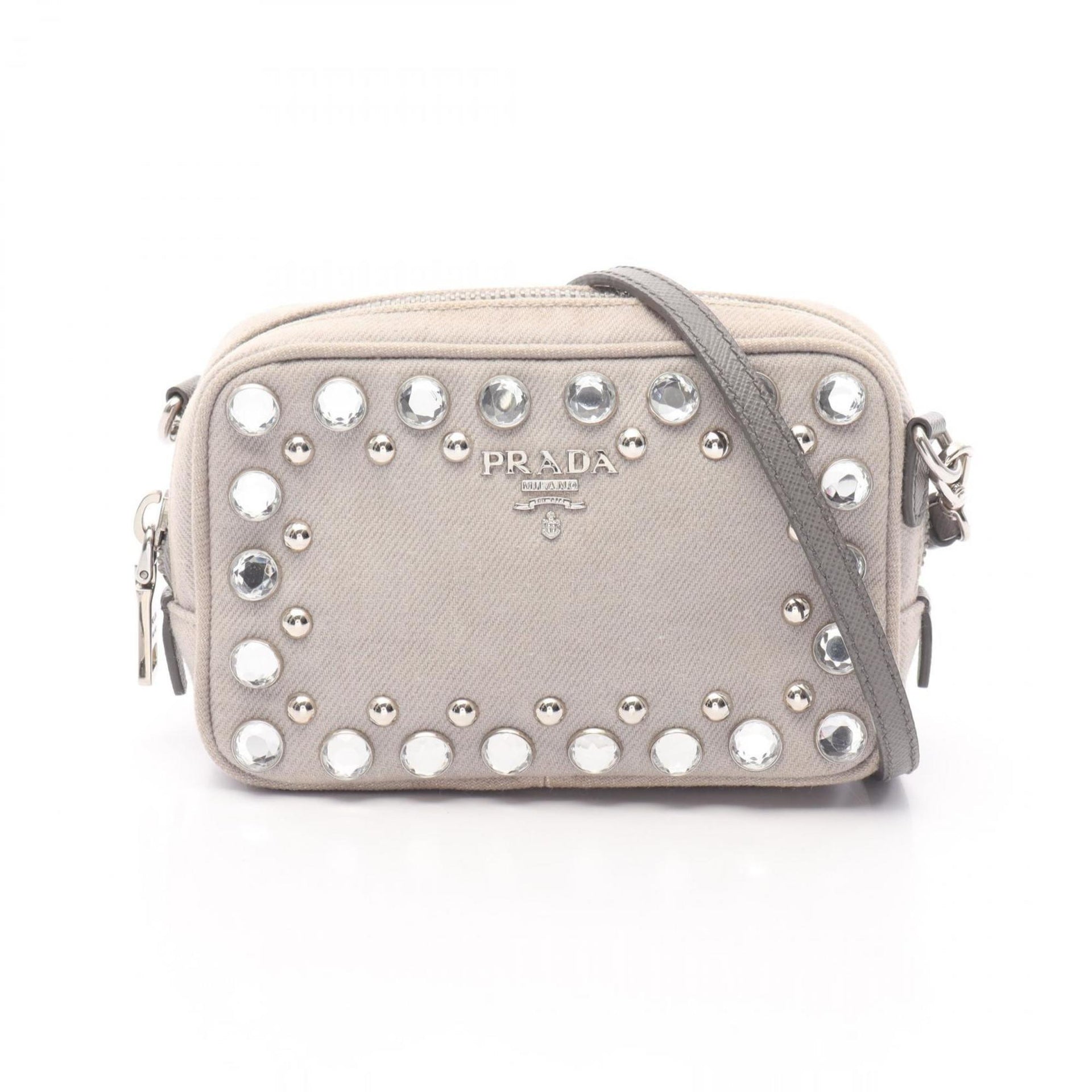 Prada Shoulder Bag in Canvas and Saffiano Leather, Gray, Women\'s, 1N1674