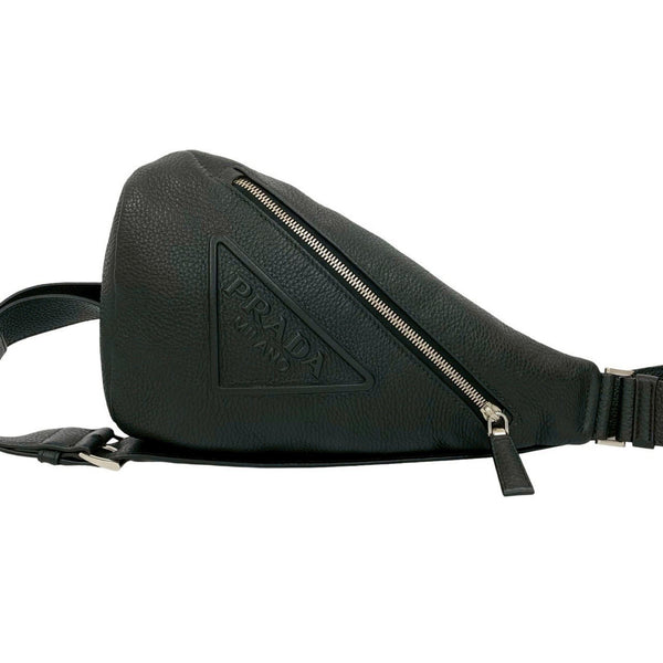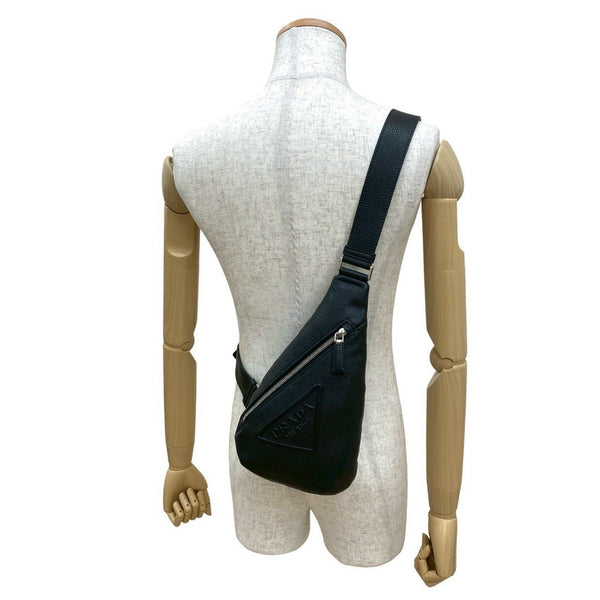Prada Triangle Logo Embossed Vitello Dino Leather Body Bag/Shoulder Bag/Pochette Black 63296