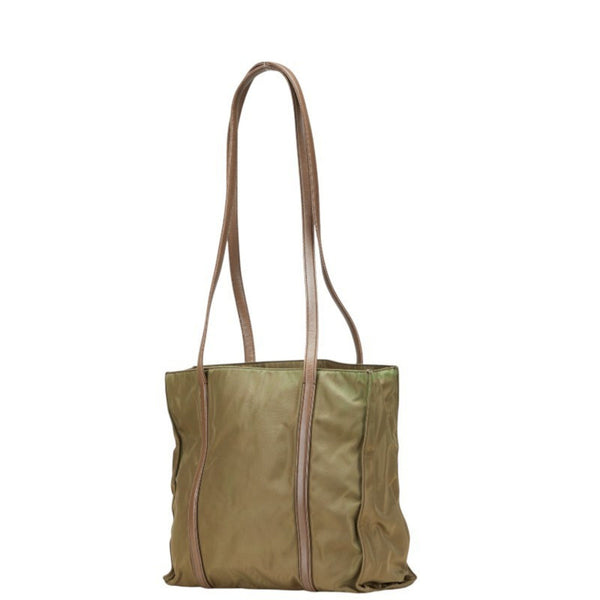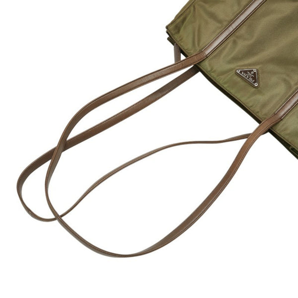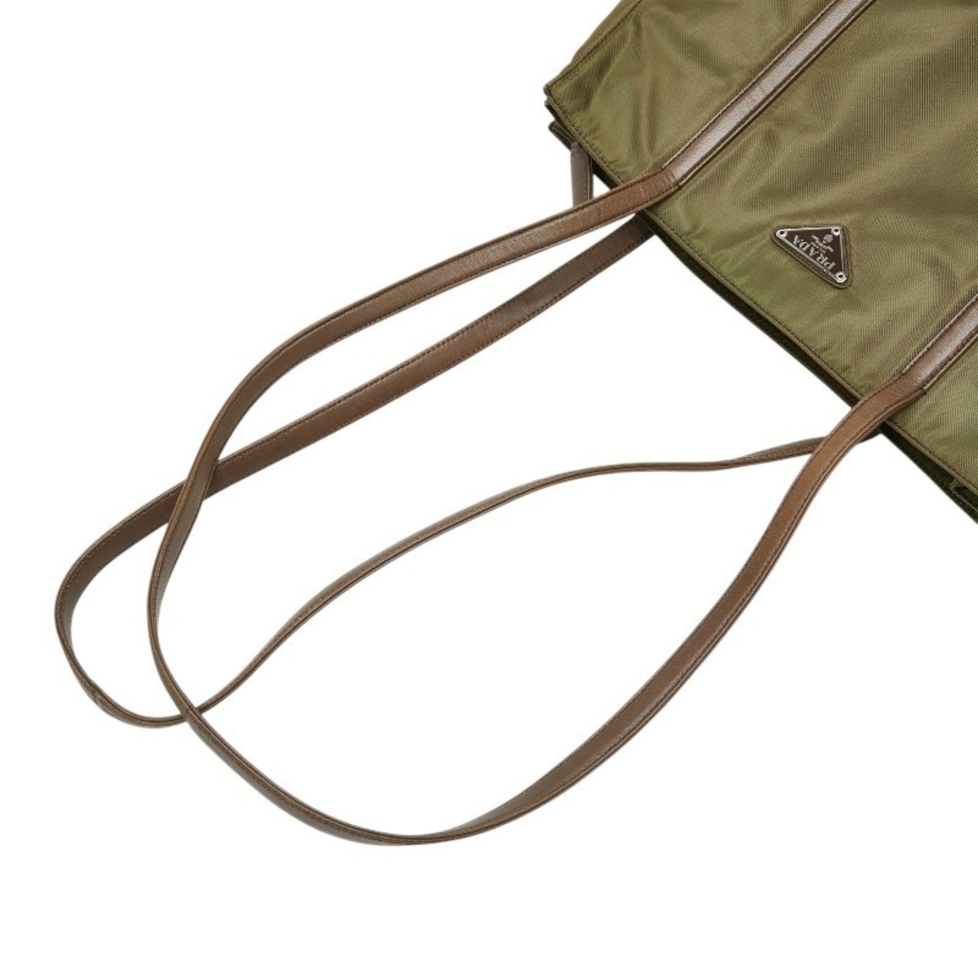 Prada Triangle Logo Plate One-Shoulder Bag Tote B6509 Khaki Brown Nylon Leather Women\'s PRADA