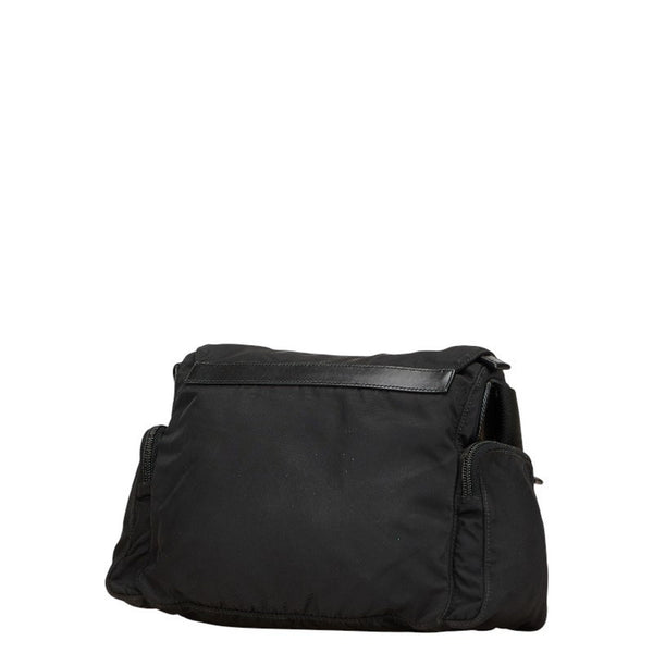 Prada Triangle Logo Plate Shoulder Bag Black Nylon Women\'s PRADA