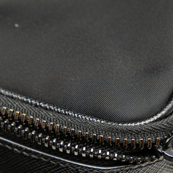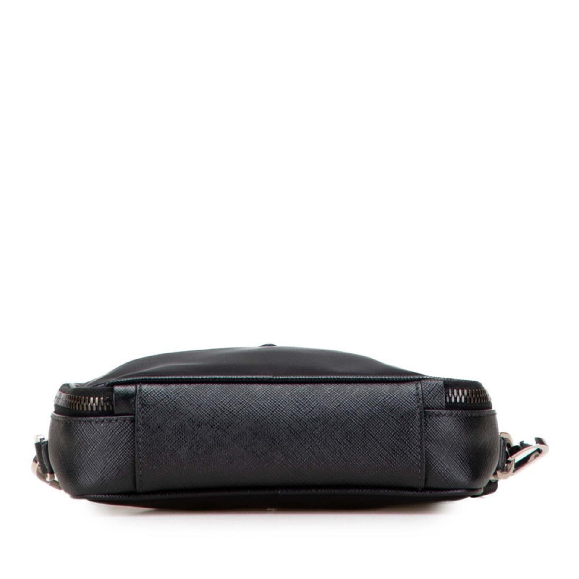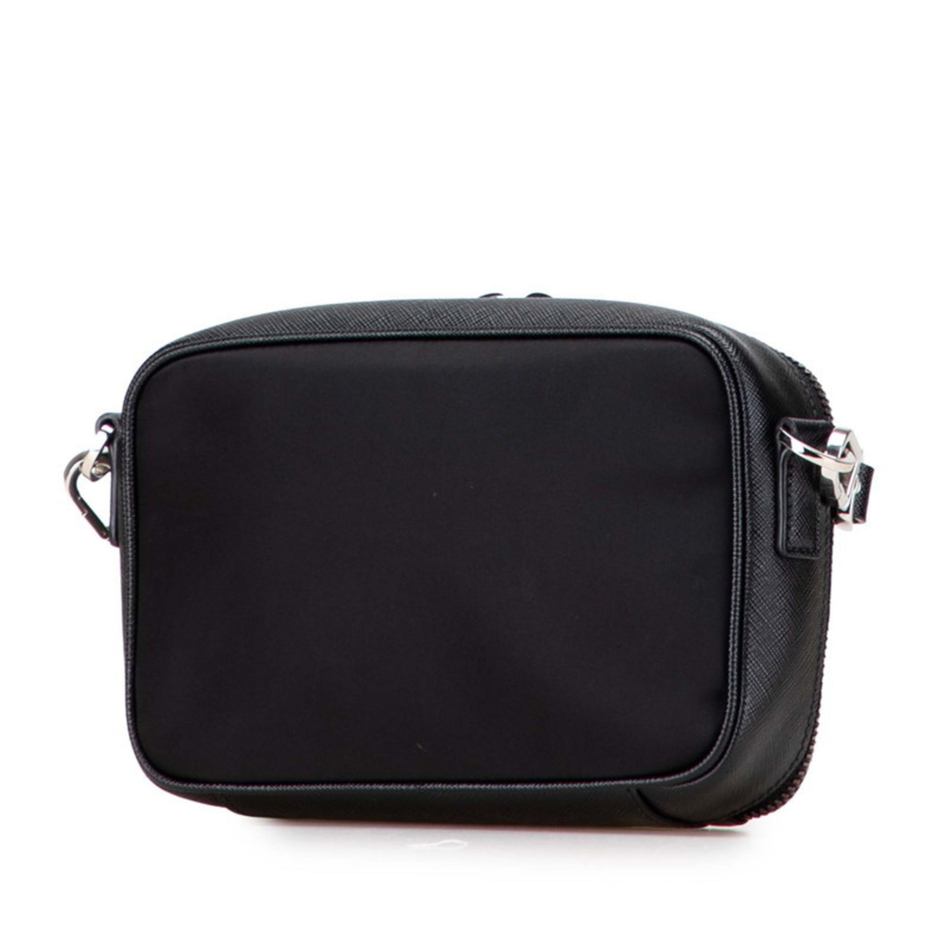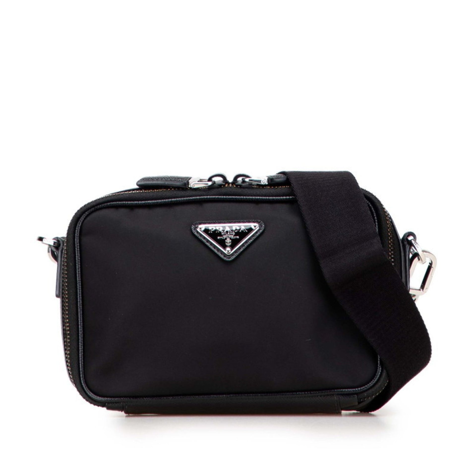 Prada Triangle Logo Plate Shoulder Bag in Black Nylon and Saffiano Leather for Women