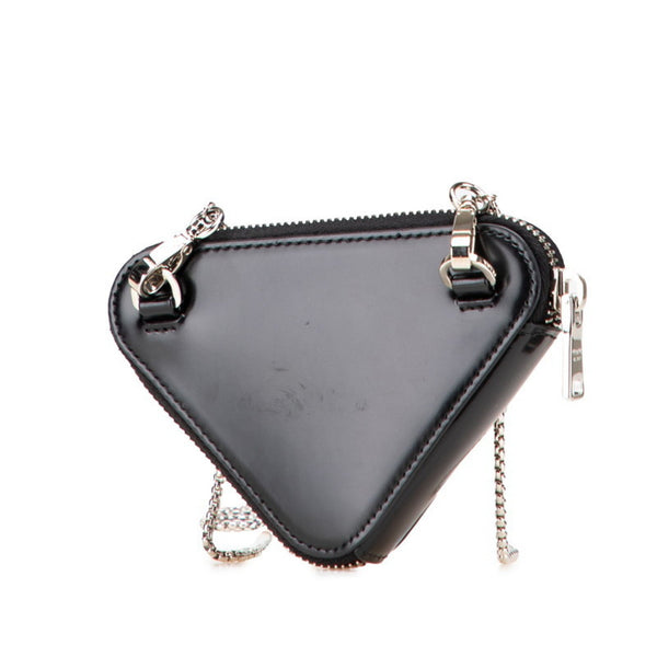 Prada Triangle Triangular Logo Plate Chain Shoulder Bag Pouch 1NR005 Black Leather Women\'s PRADA