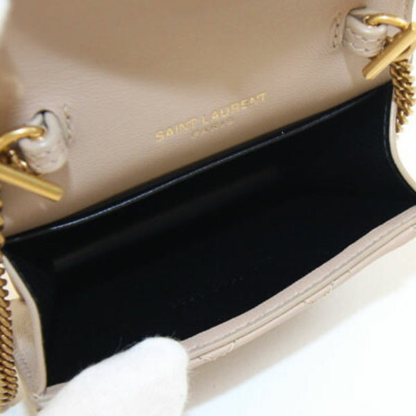 Saint Laurent Gaby Micro Shoulder Bag 685612 Beige Leather Quilted Pochette with Chain Strap for Women SAINT LAURENT