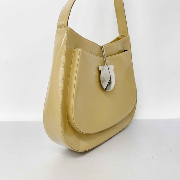 Salvatore Ferragamo Gancini Leather Shoulder Bag, Beige, Women\'s