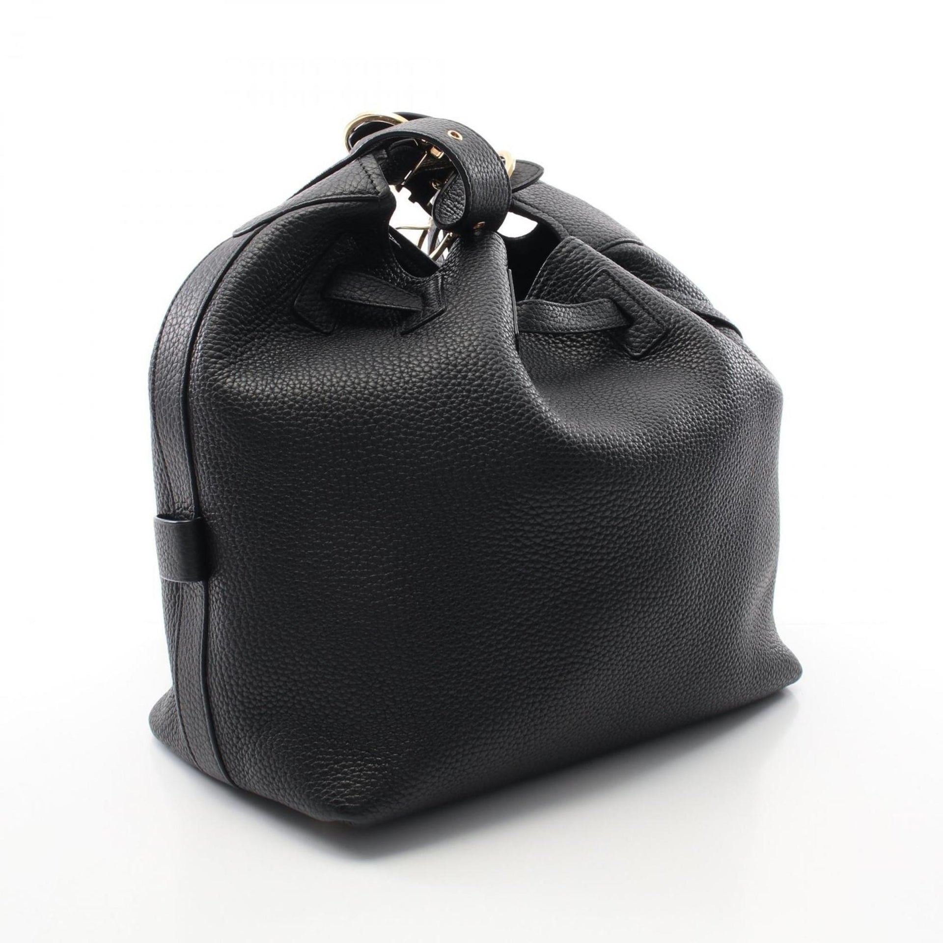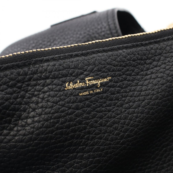 Salvatore Ferragamo Gancini Shoulder Bag, Leather, Women\'s, Black, Size 21, G586