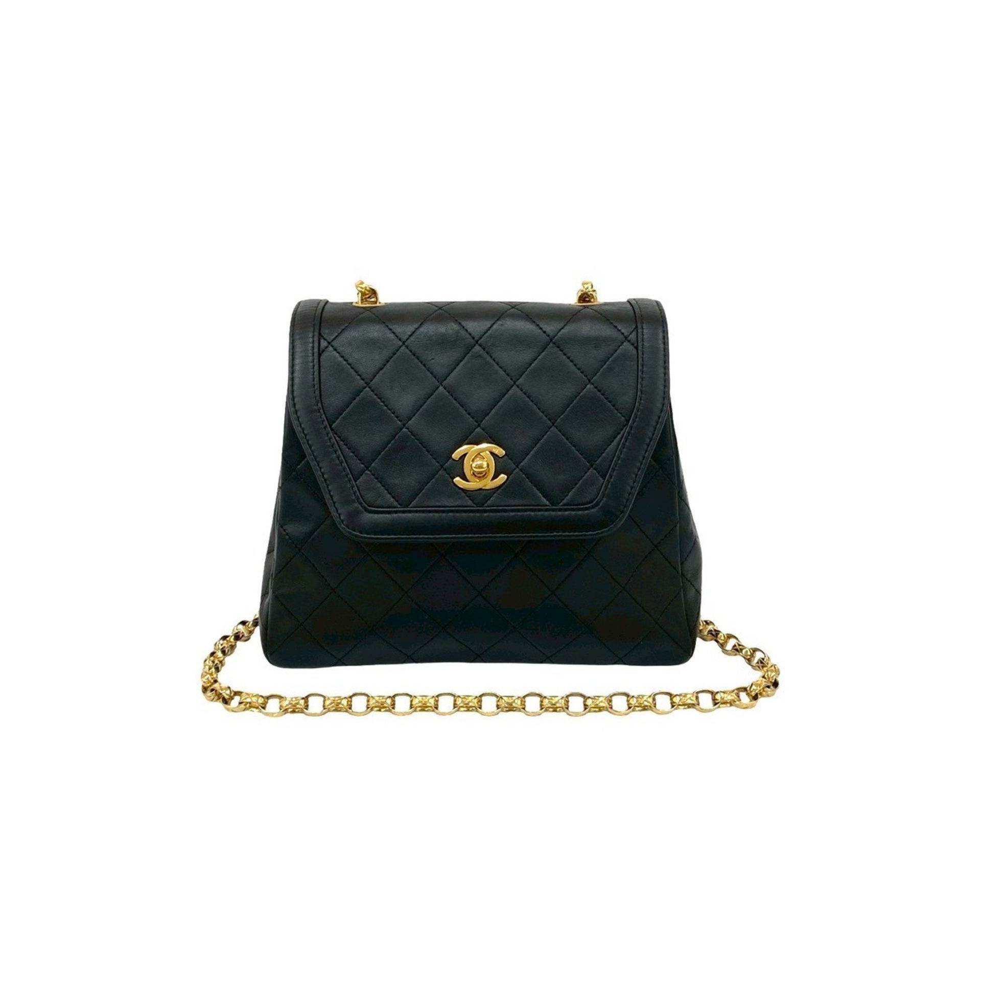 Seal No. 0 CHANEL Matelasse Coco Lambskin Leather Chain Shoulder Bag Pochette Black 27516