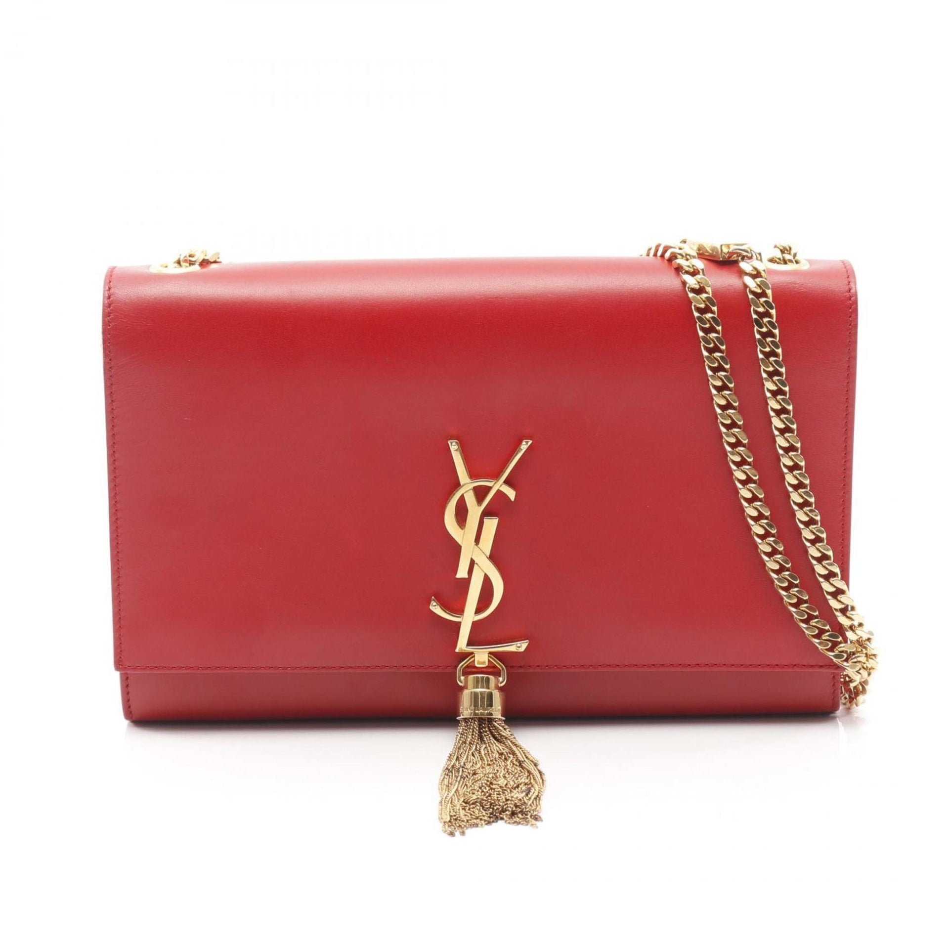 Yves Saint Laurent Saint Laurent Paris Kate Monogram Shoulder Bag, Leather, Women\'s, Red, 354119