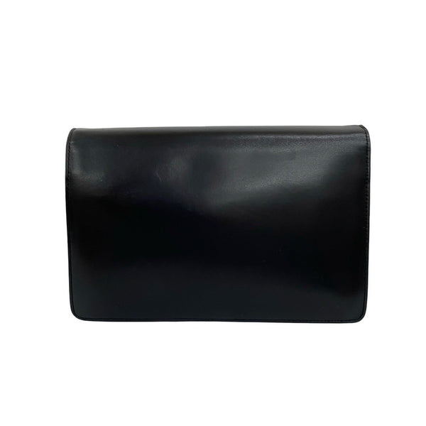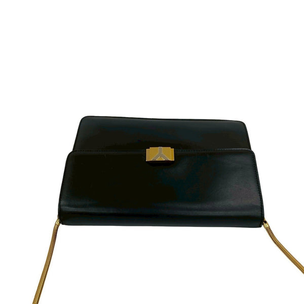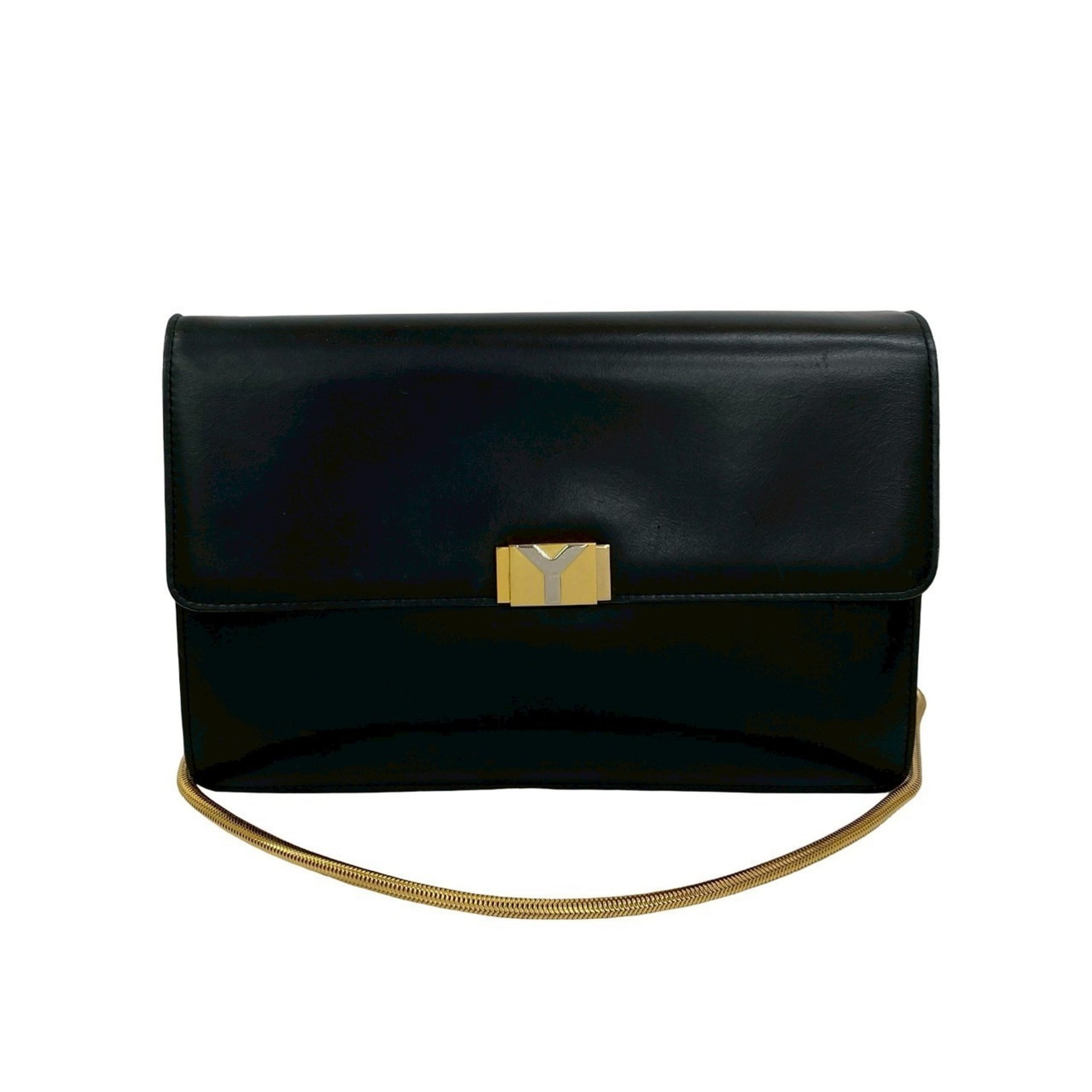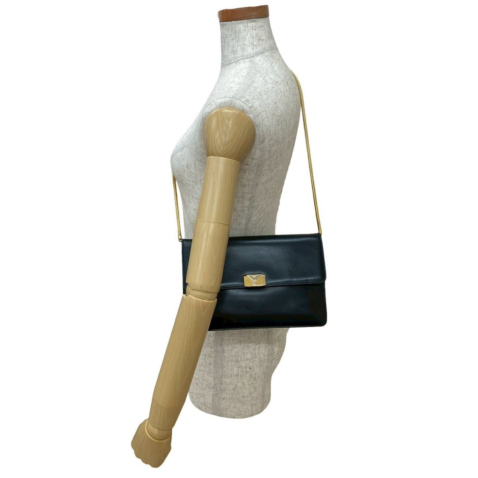 YVES SAINT LAURENT Vintage Y Logo Hardware Leather Shoulder Bag Pochette Black 41811