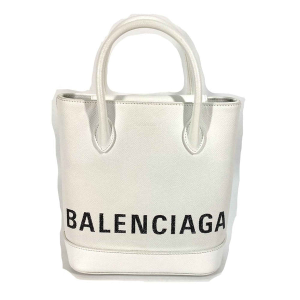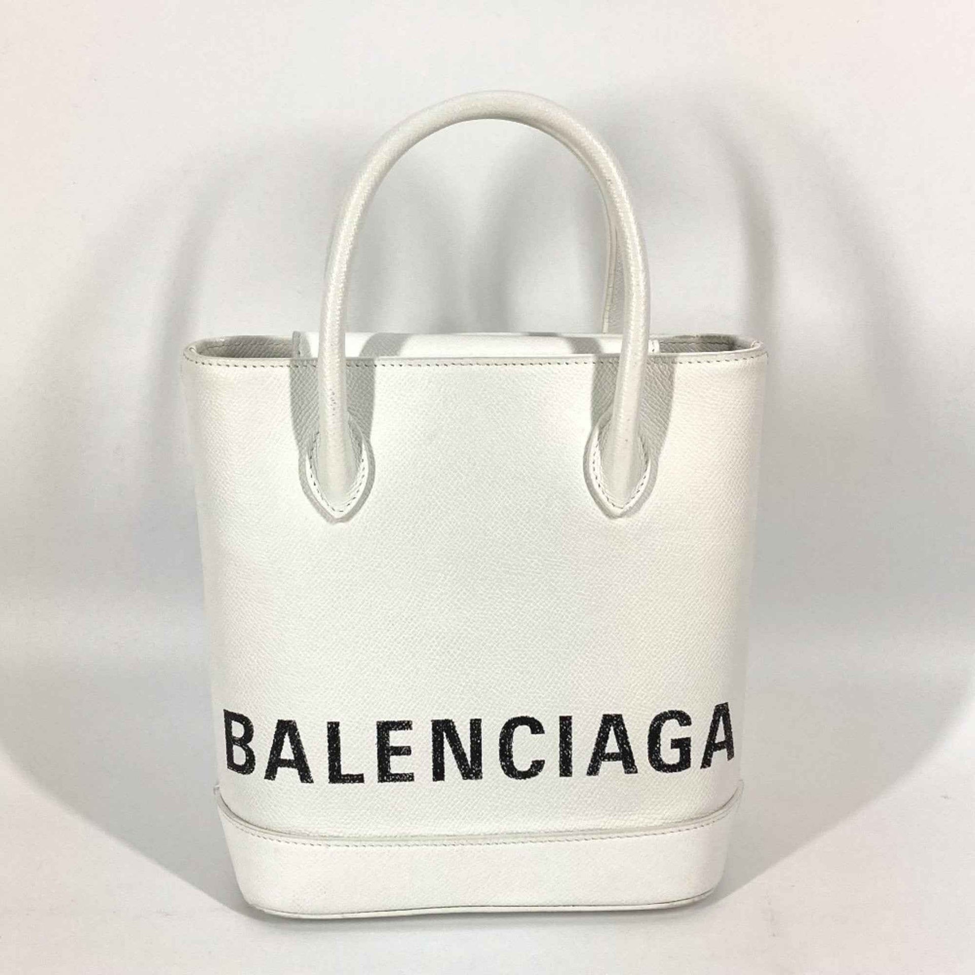 BALENCIAGA 596159 Logo Ville XXS 2-Way Handbag, Tote Bag, Shoulder Leather, Women\'s, White
