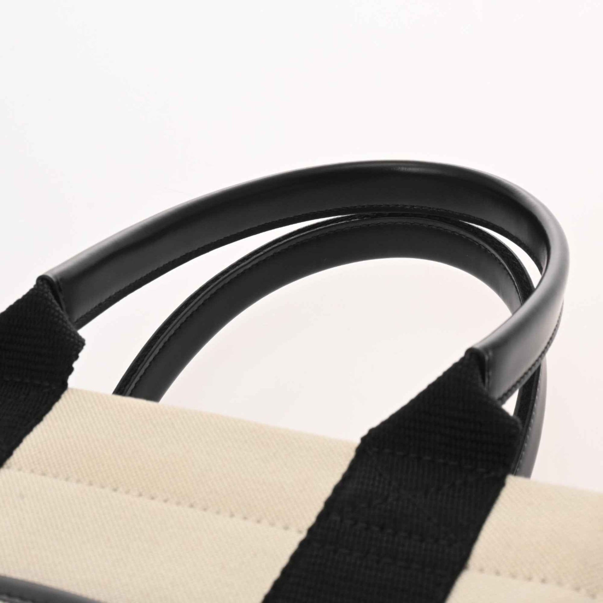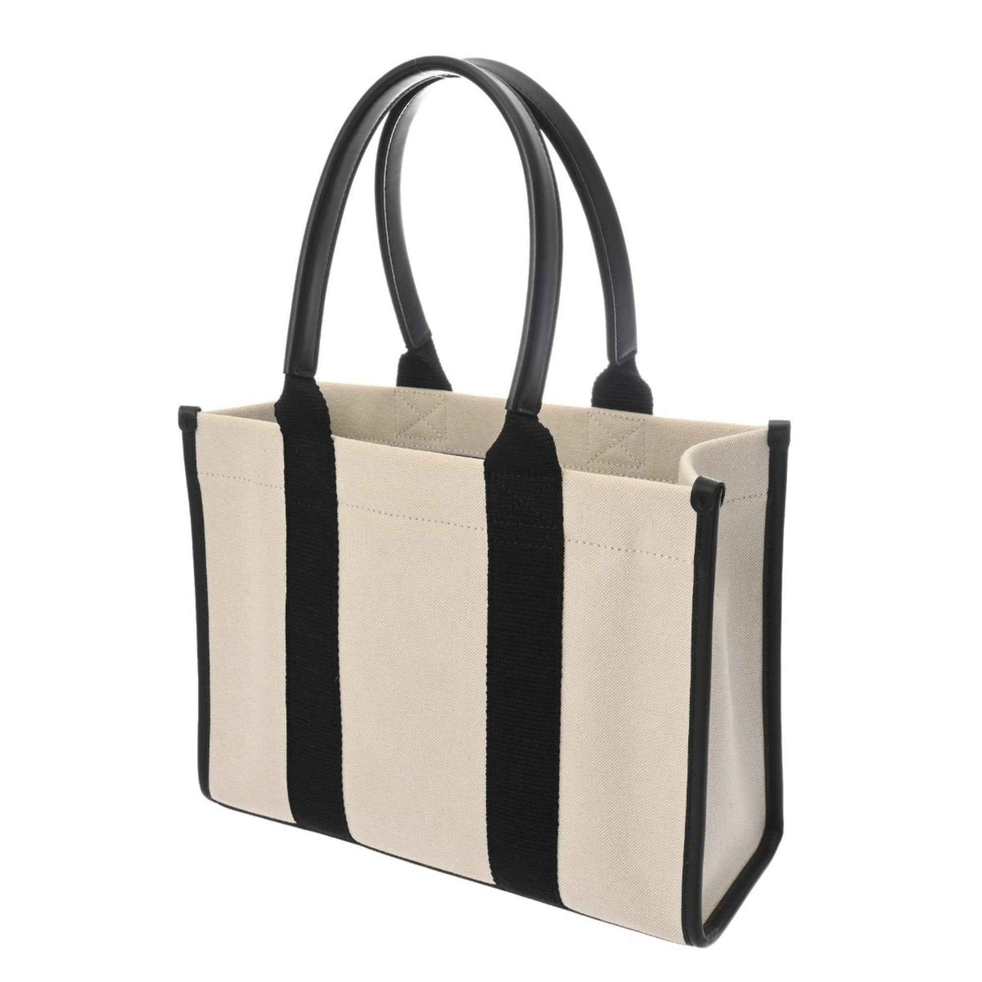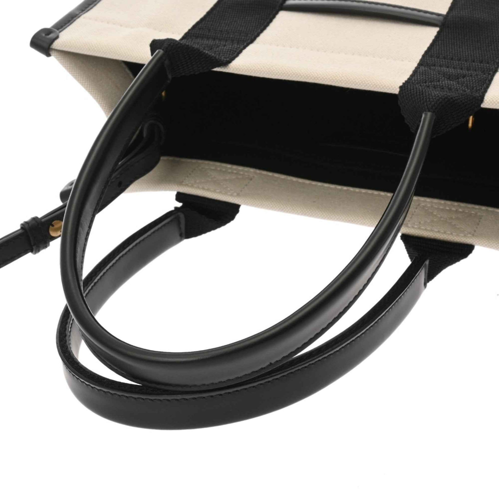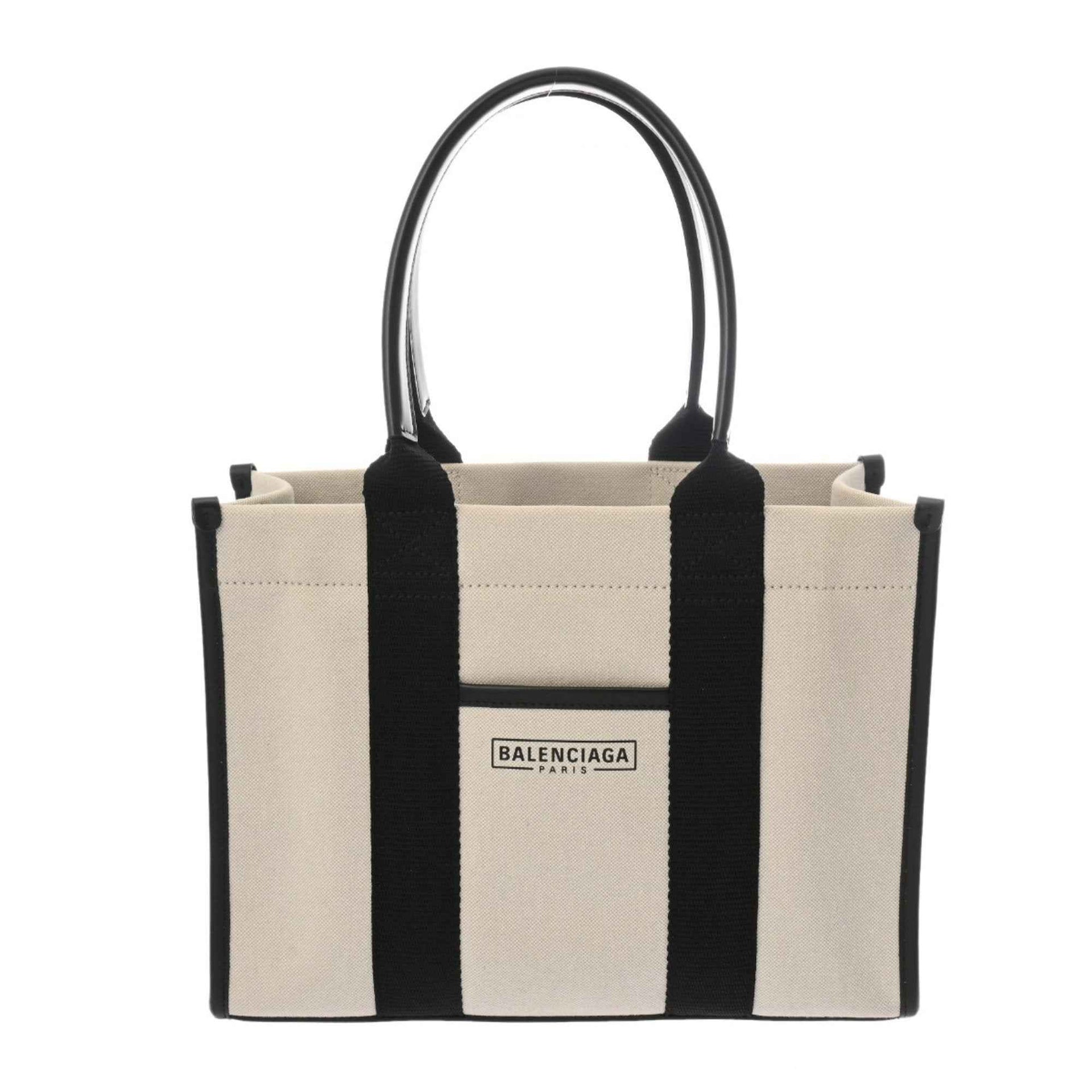 BALENCIAGA Hardware Small Tote, 2-Way, White/Black, 671402, Women\'s Canvas and Leather Tote Bag