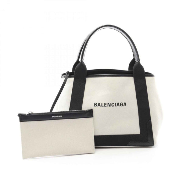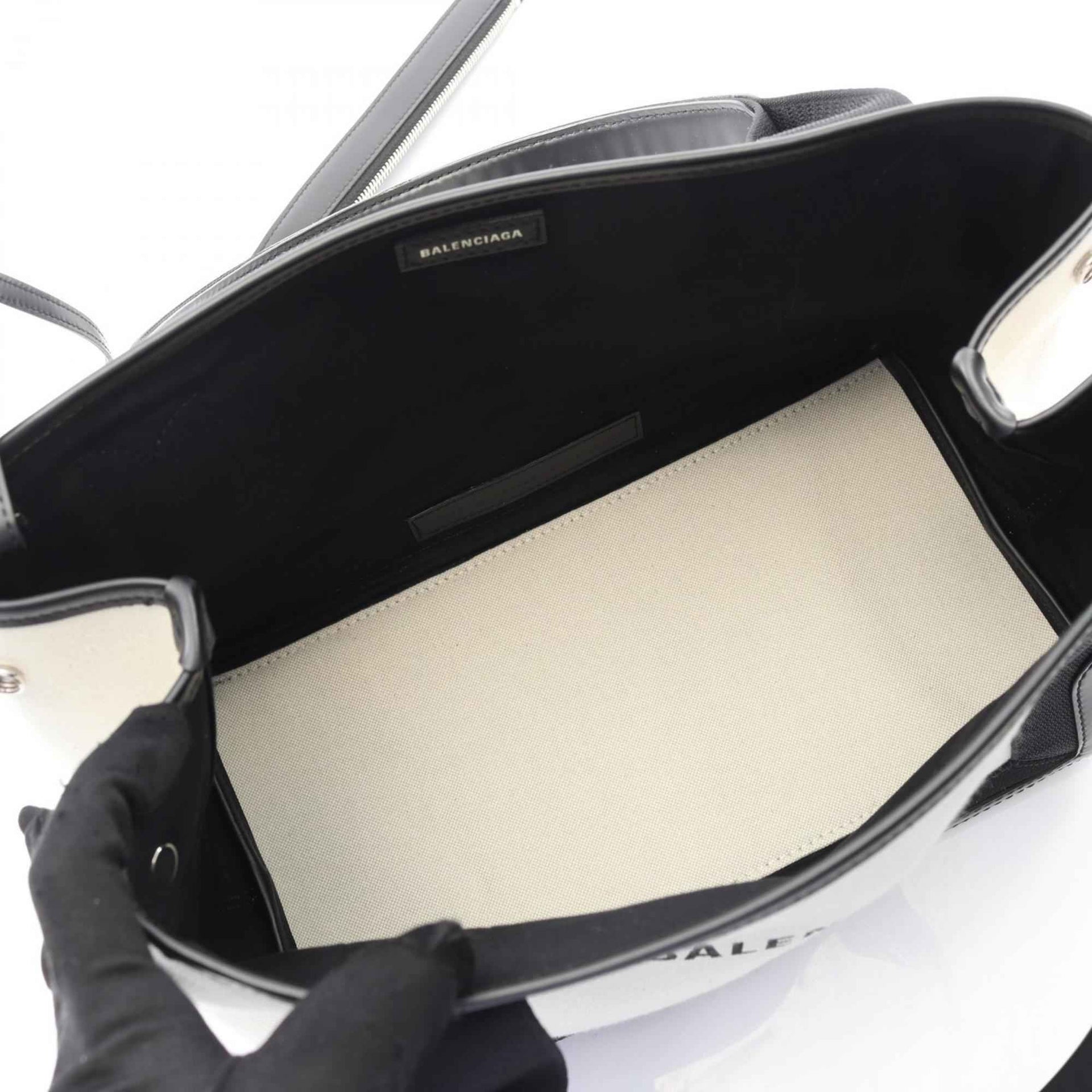 Balenciaga Navy Cabas S Tote Bag, Canvas and Leather, Women\'s, White/Black, 339933