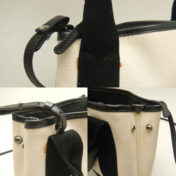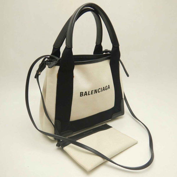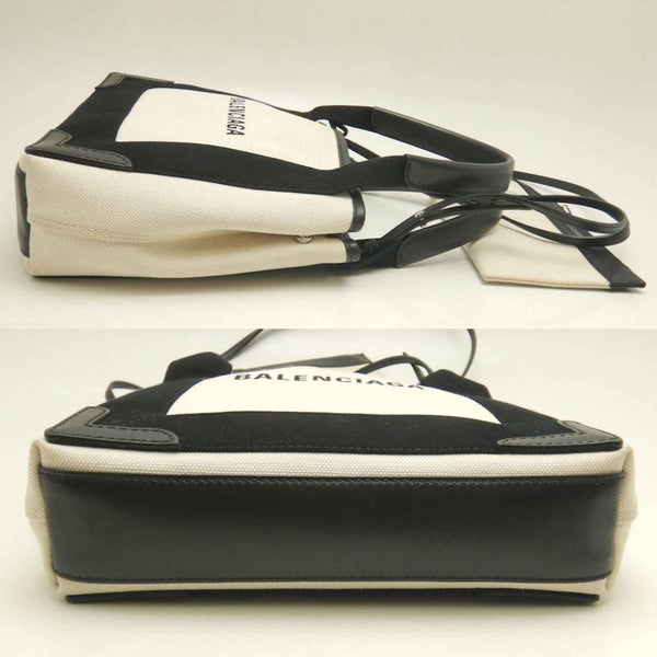 BALENCIAGA Navy Cabas XS Tote Bag (390346), Canvas and Leather, Ivory Black, Women\'s, 253199