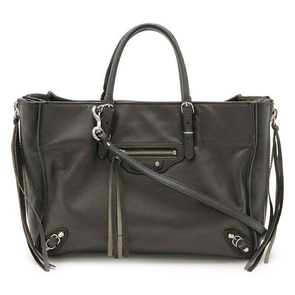 BALENCIAGA Paper A6 Zip-Around Handbag/Tote Bag in Gray Leather (Mirror Missing) 370926