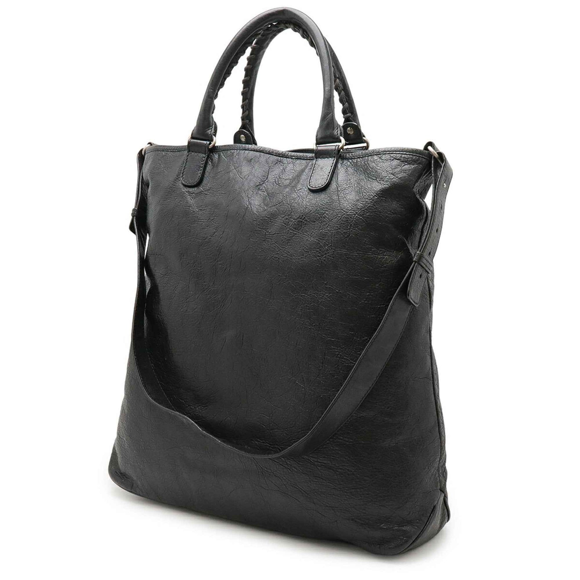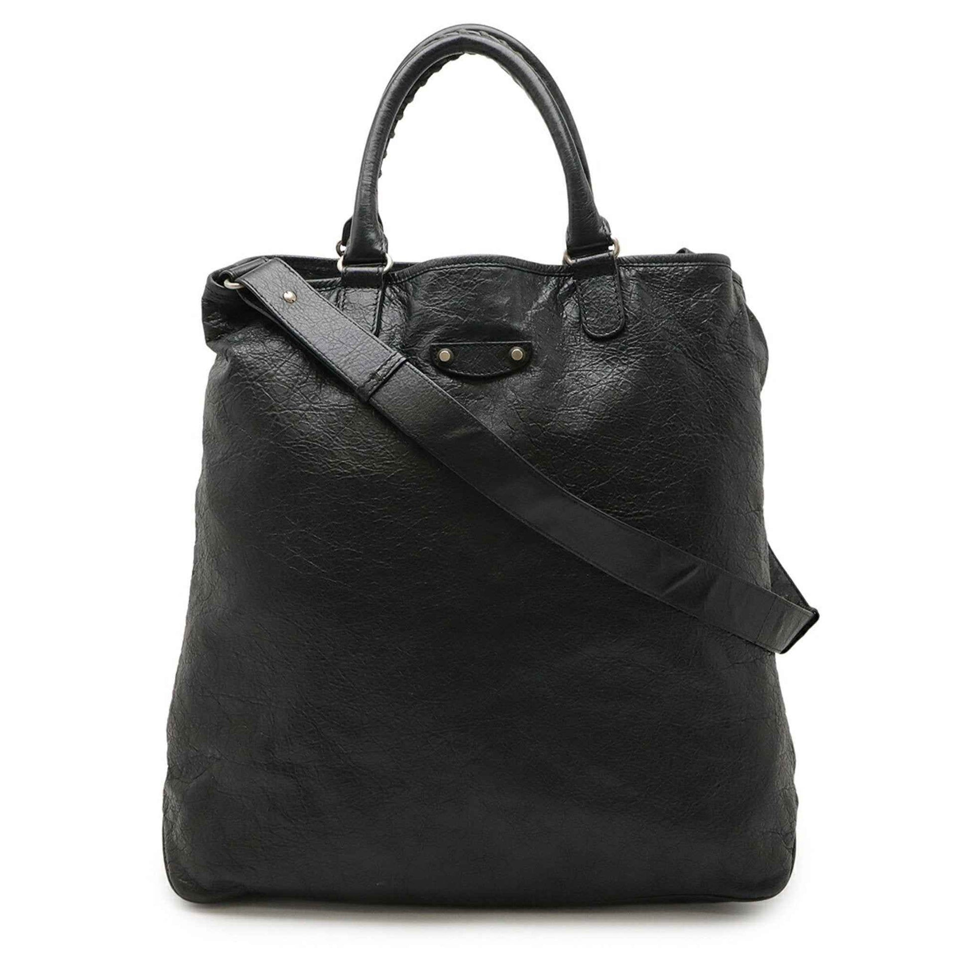 BALENCIAGA Tote Bag Shoulder Leather Black 298978