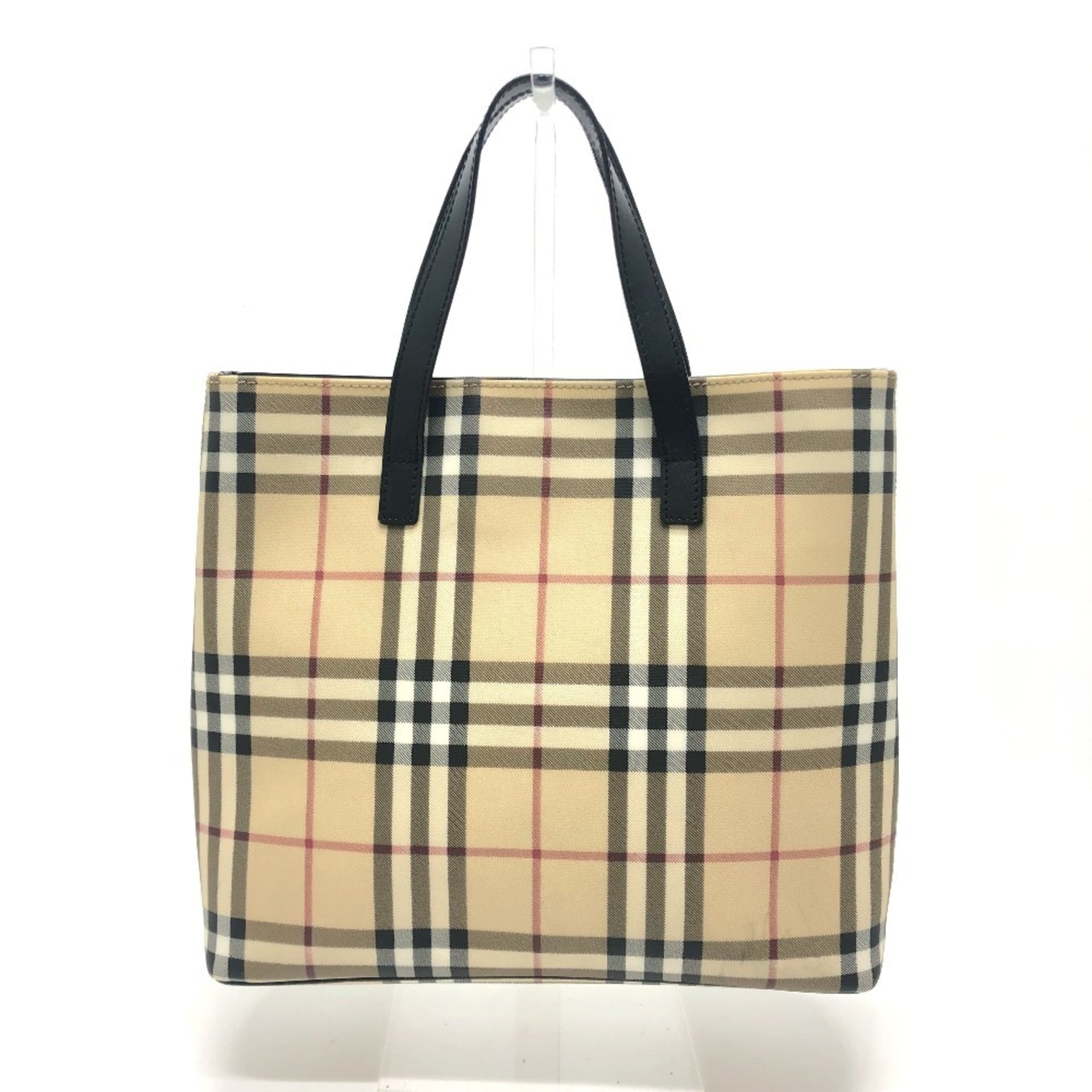 BURBERRY Check Tote Bag in PVC/Leather, Women\'s, Beige