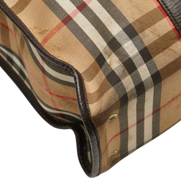 Burberry Nova Check Shadow Horse Tote Bag, Beige, Brown, Multicolor Canvas, Leather, Women\'s, BURBERRY