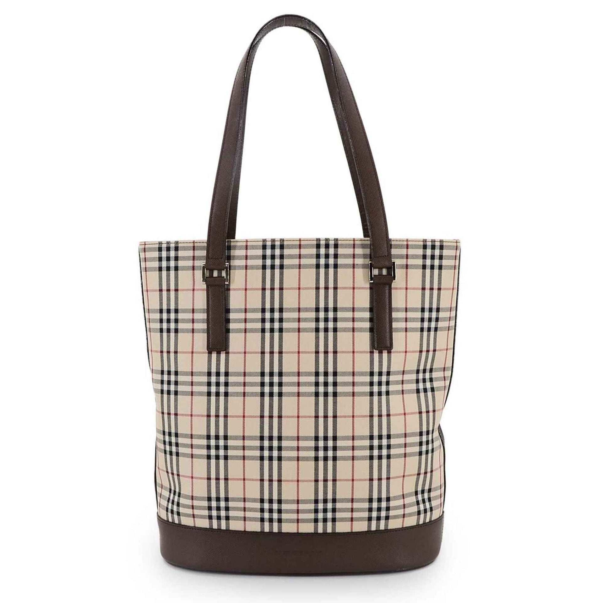 Burberry Nova Check Tote Bag in Canvas and Leather (Beige Brown)