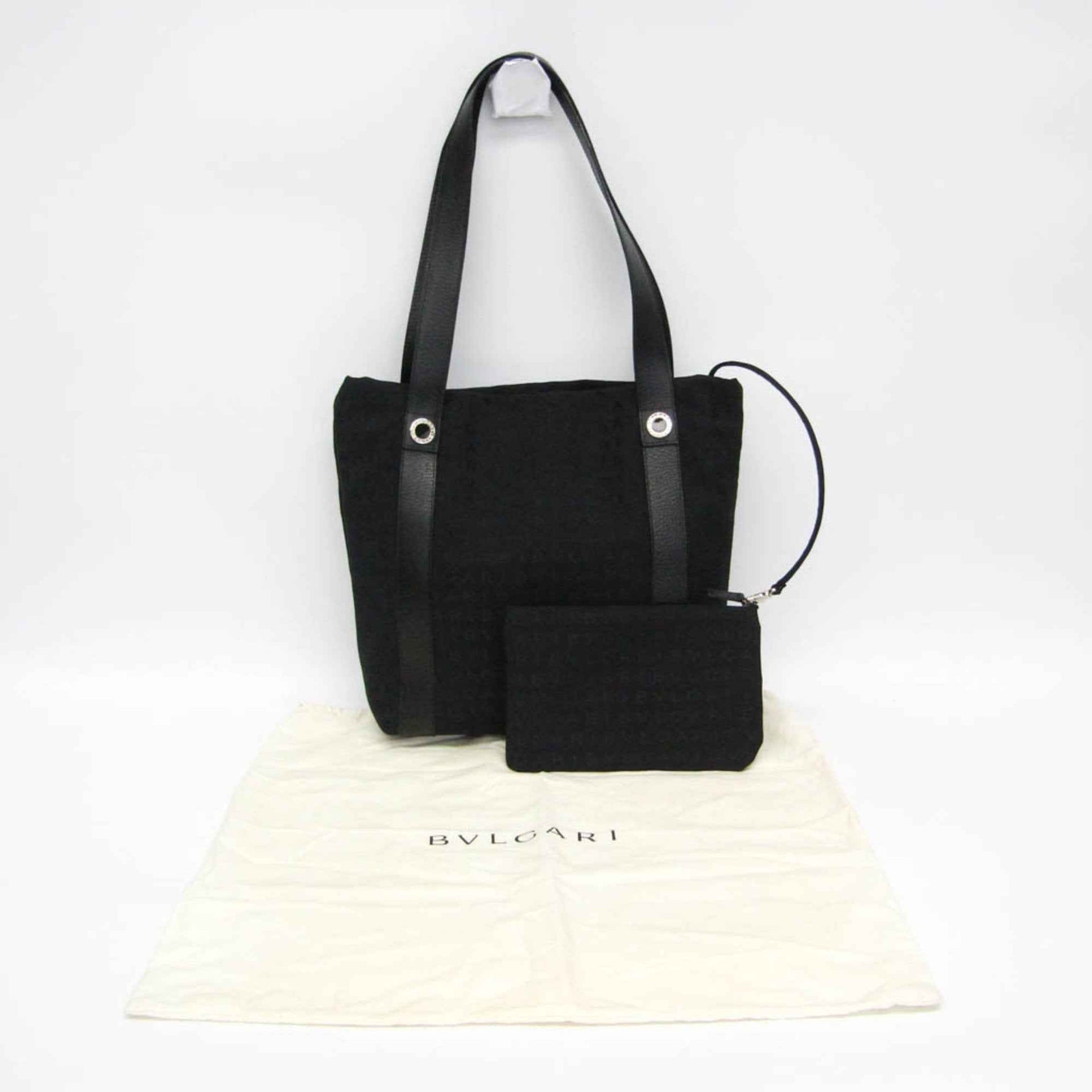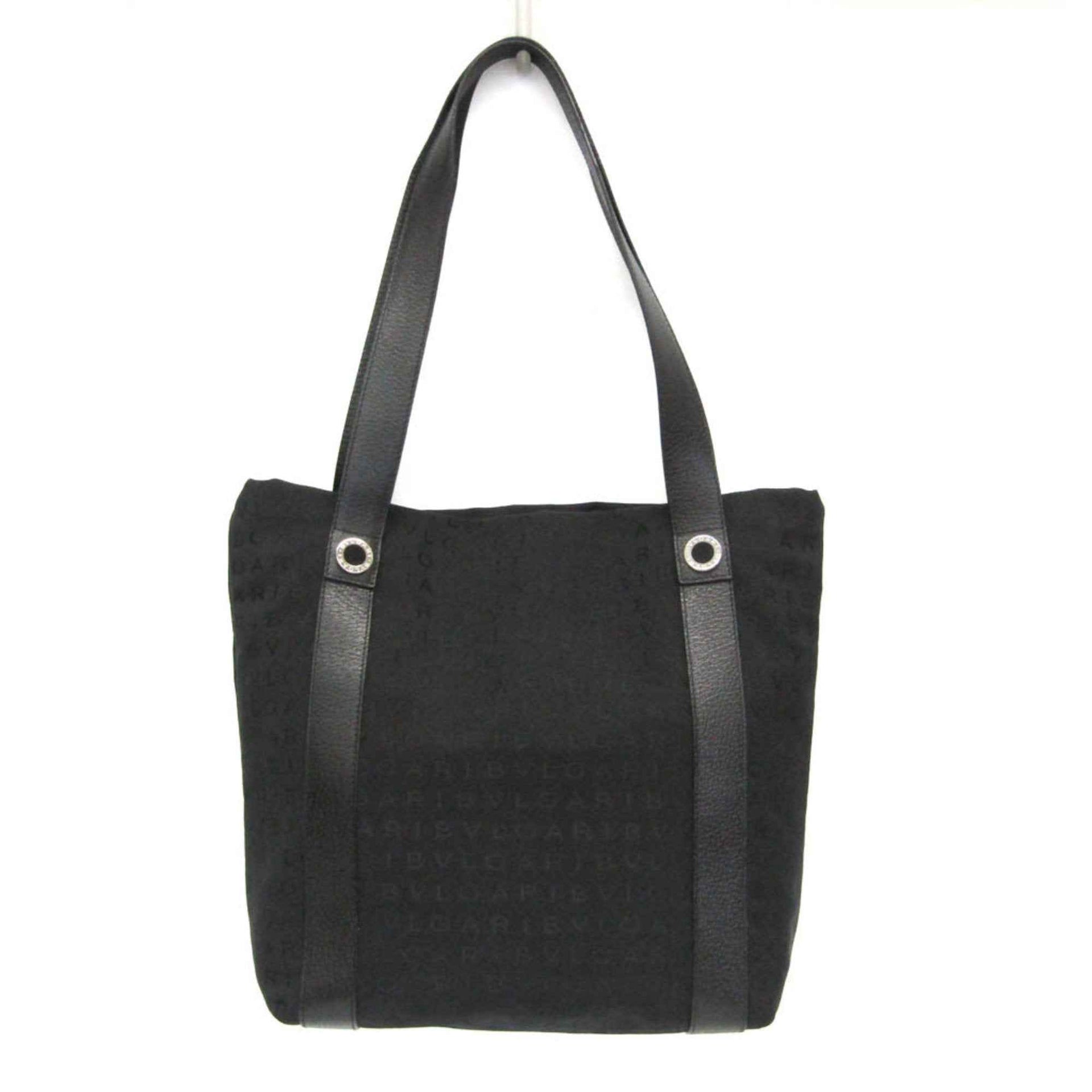 Bvlgari Logomania Women\'s Canvas,Leather Tote Bag Black