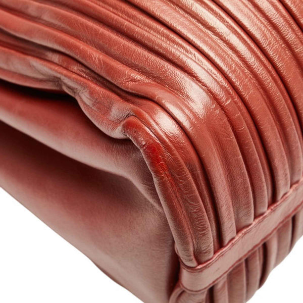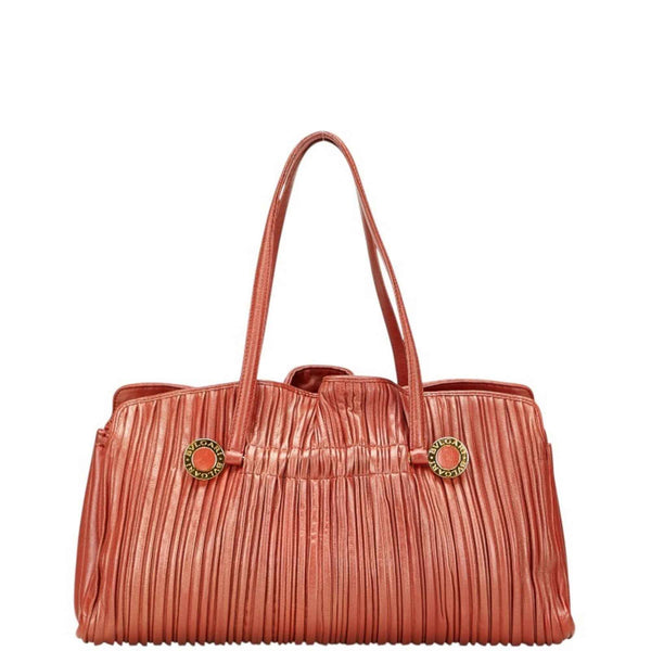 BVLGARI Pleated Tote Bag Shoulder Brown Leather Women\'s