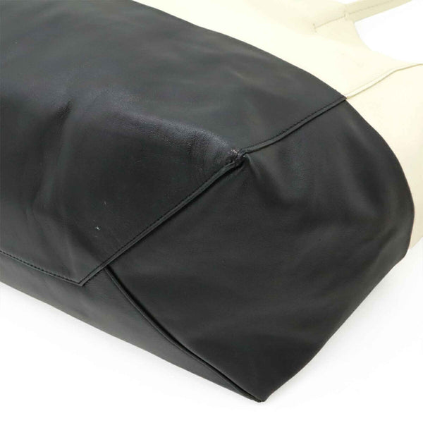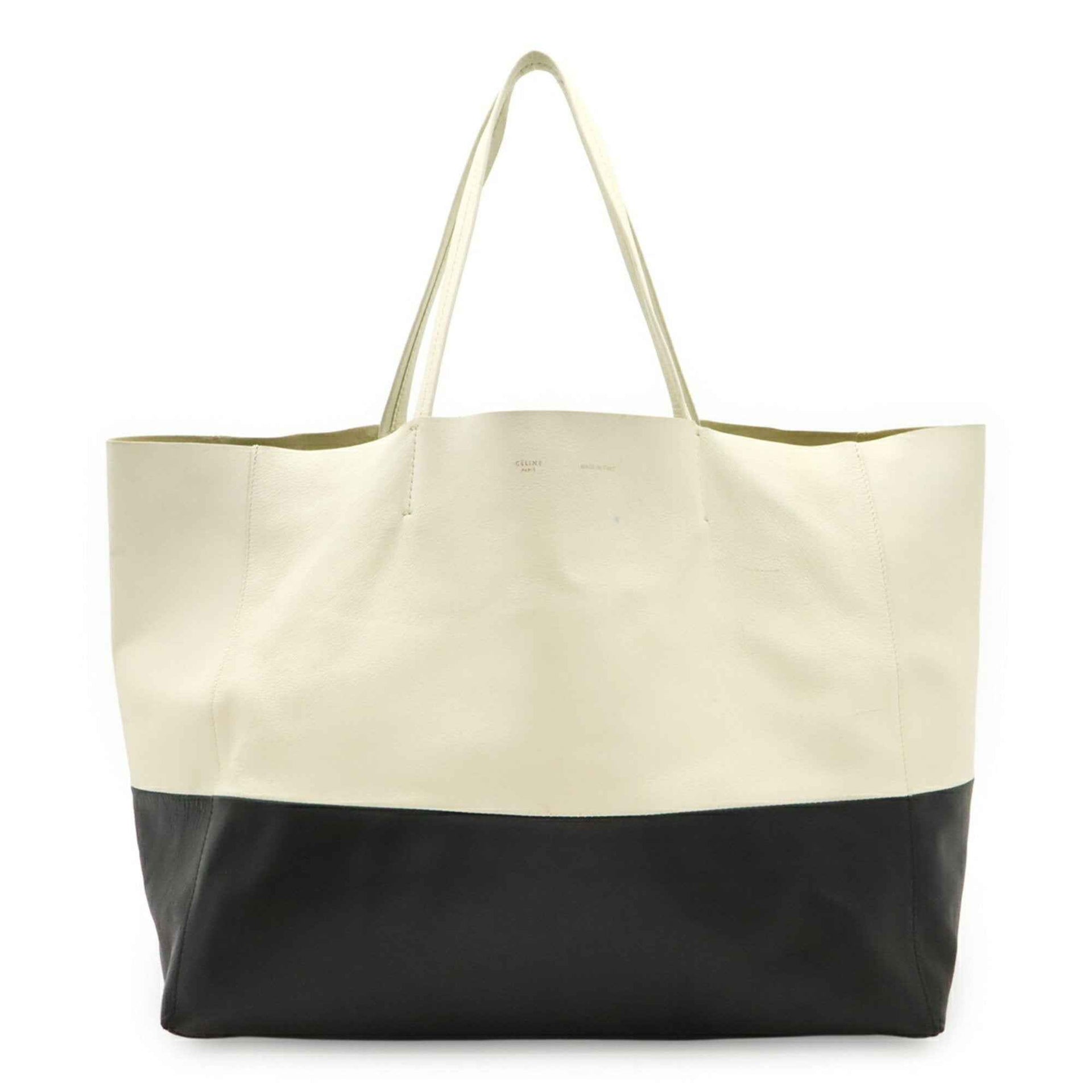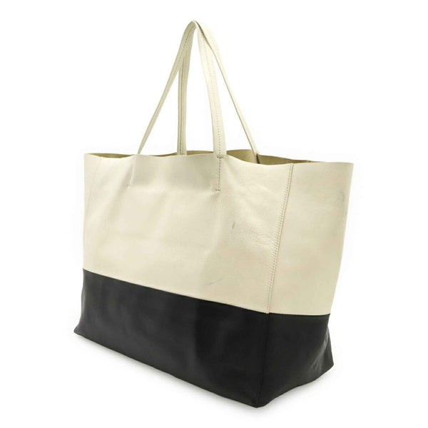 CELINE Horizontal Cabas Tote Bag, Large Shoulder Leather, White, Black