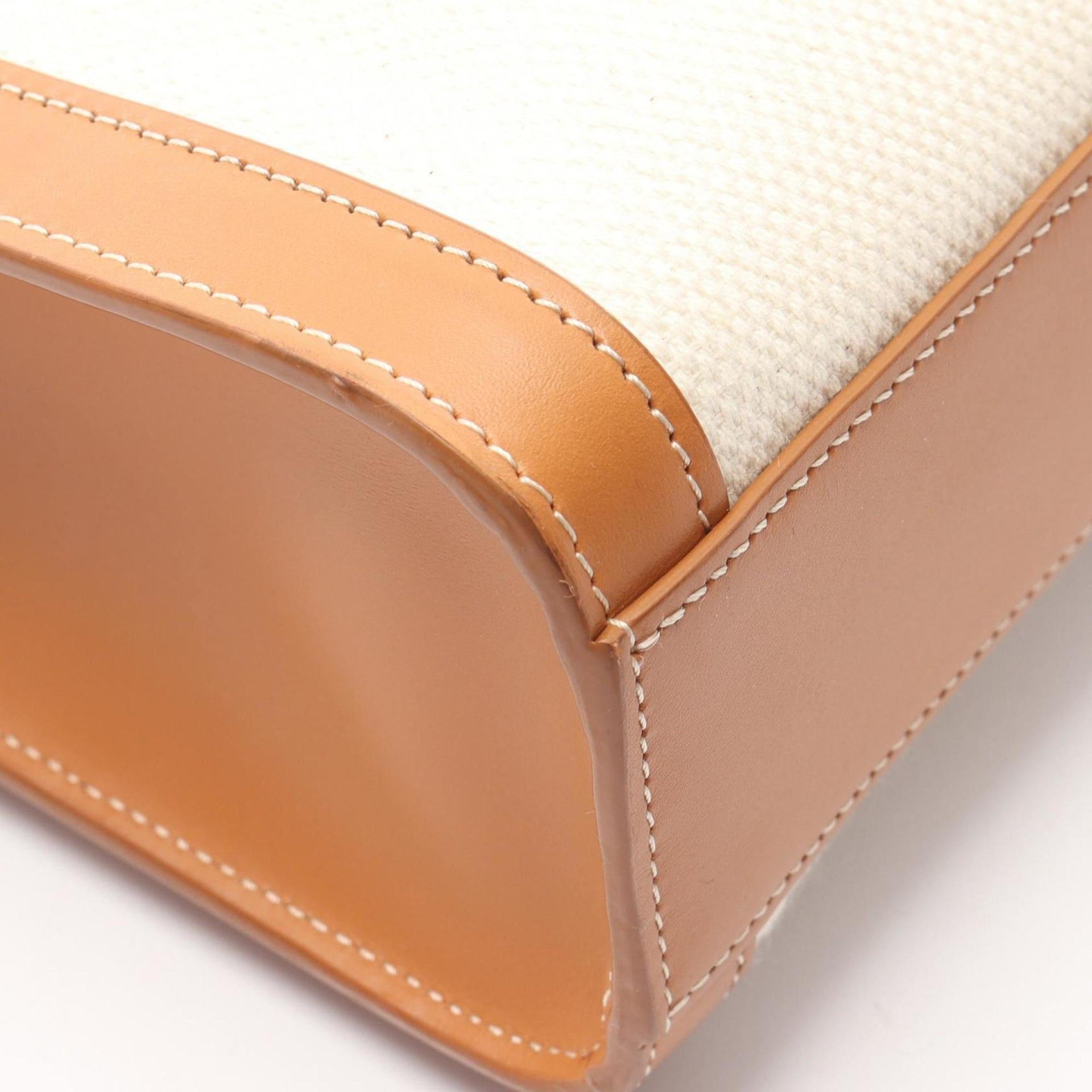 Celine Small Vertical Cabas Tote Bag in Canvas and Leather, Women\'s, White/Brown, 192082BNZ