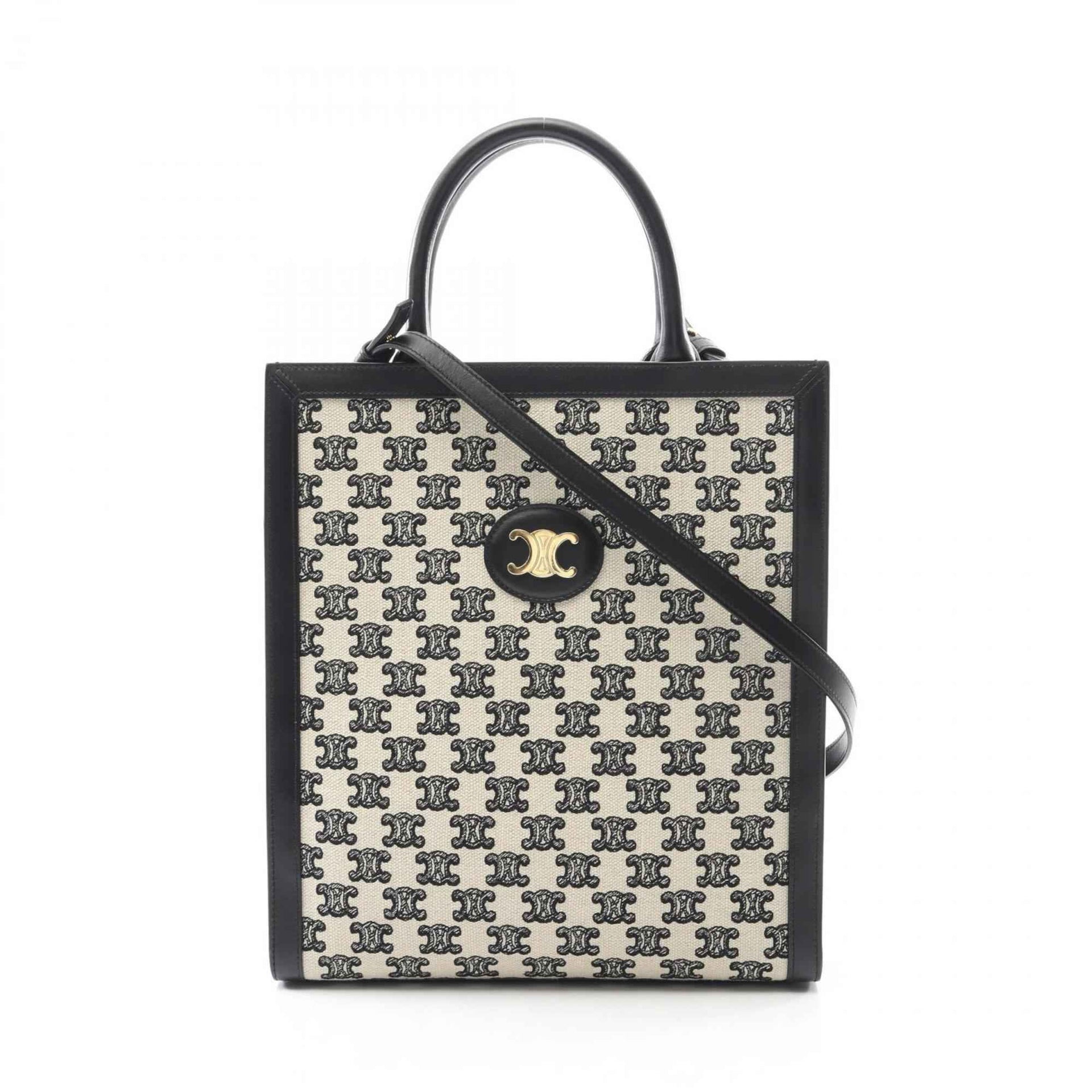 Celine Small Vertical Cabas Triomphe Tote Bag, Canvas and Leather, Women\'s, White Black, S-LM-4240
